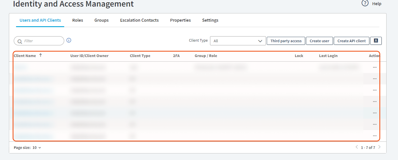 Click Users and API clients to view all active connectors.