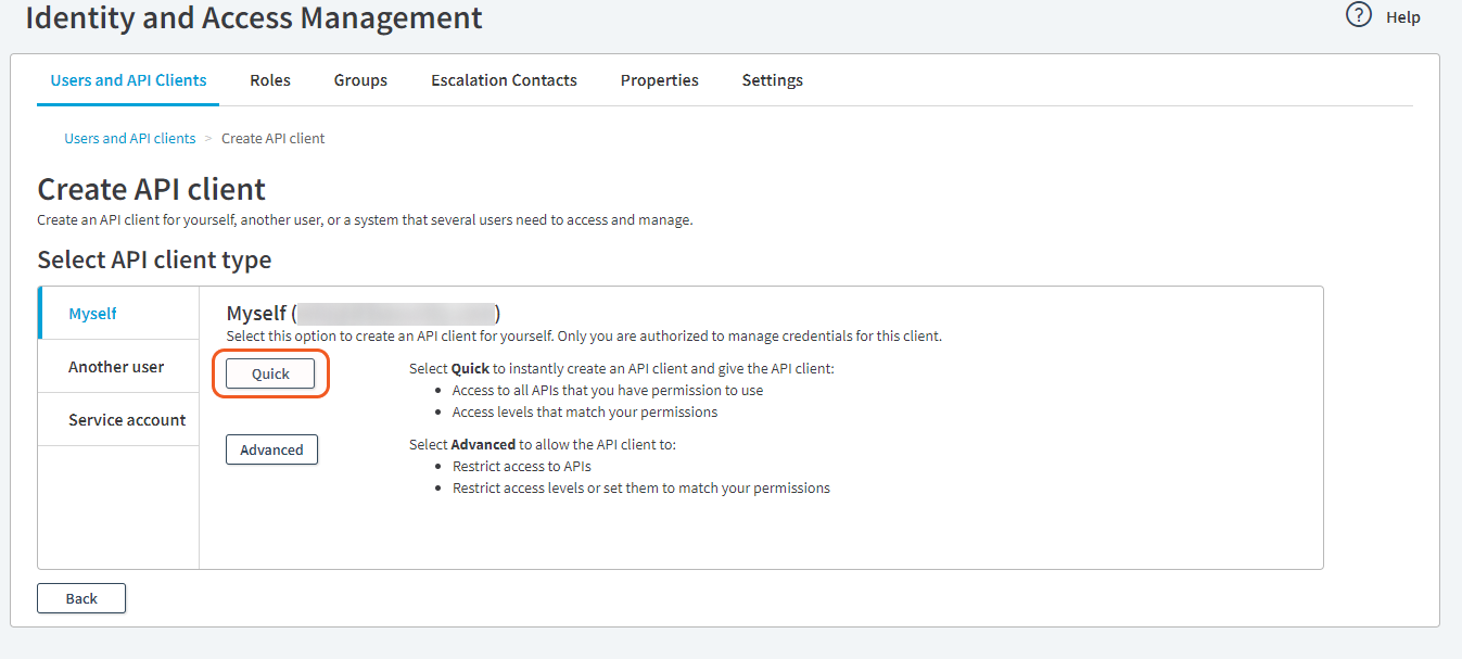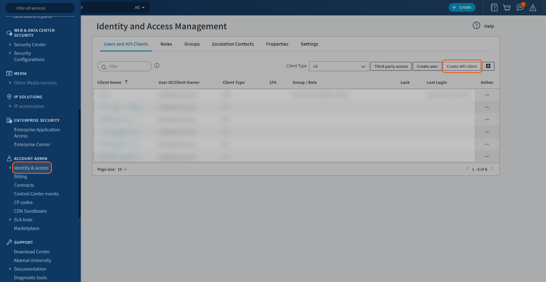 Navigate to the left Navigation menu > ACCOUNT ADMIN > Identity & Access, and Create API client to add an API connector.