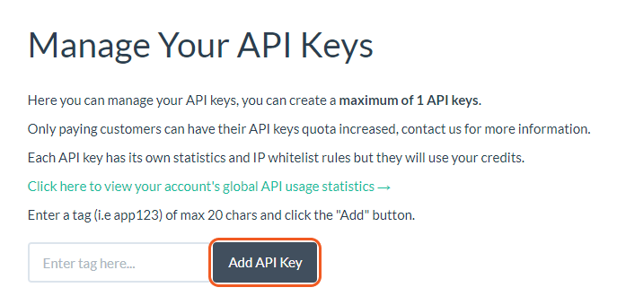 Click on My API Keys, and select Add API Key.