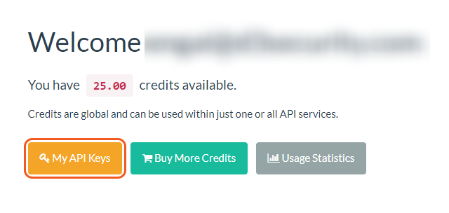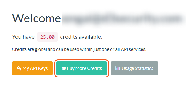Credits are valid for one year only. More API keys can be added or modified. Ensure that the API keys in VSOC are current.