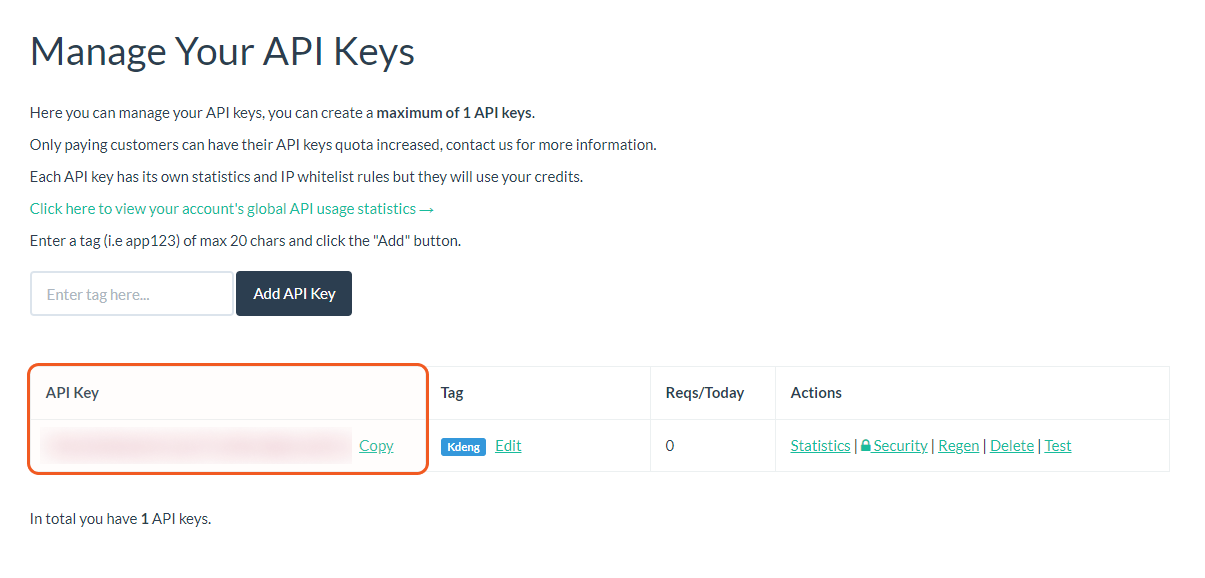2. Copy the API Key from the APIVoid platform.