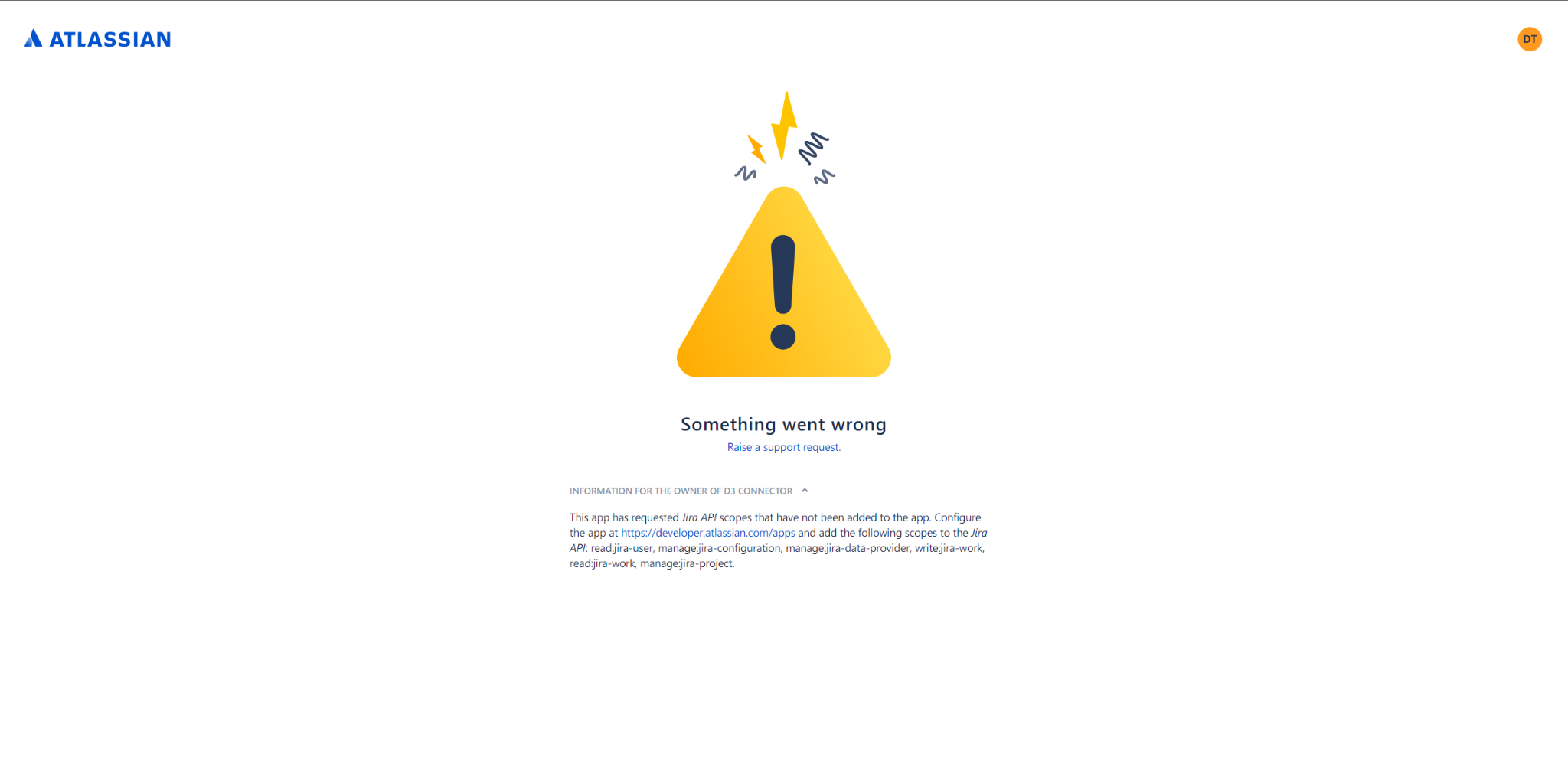 You may not have enabled the necessary permission scopes for your Jira API app. See step 8 of OAuth 2.0 Authentication for instructions on enabling the required scopes.