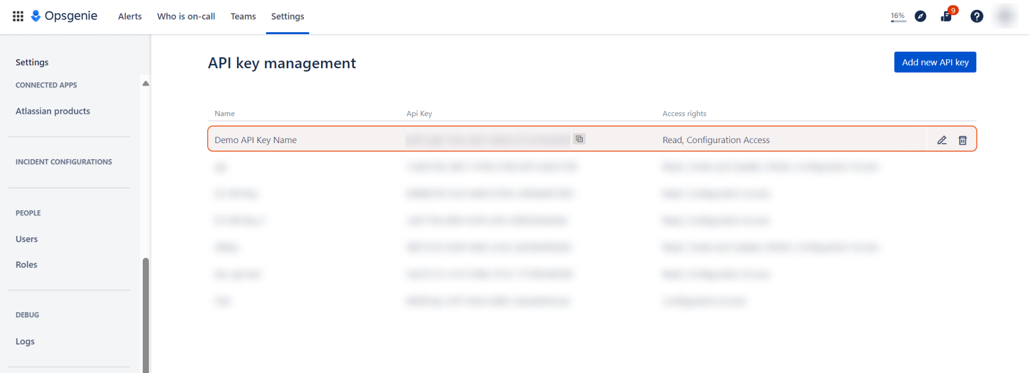 For instructions on how to obtain the API key and configure the access rights, refer to the Configuring Atlassian OpsGenie to Work with D3 SOAR section below.