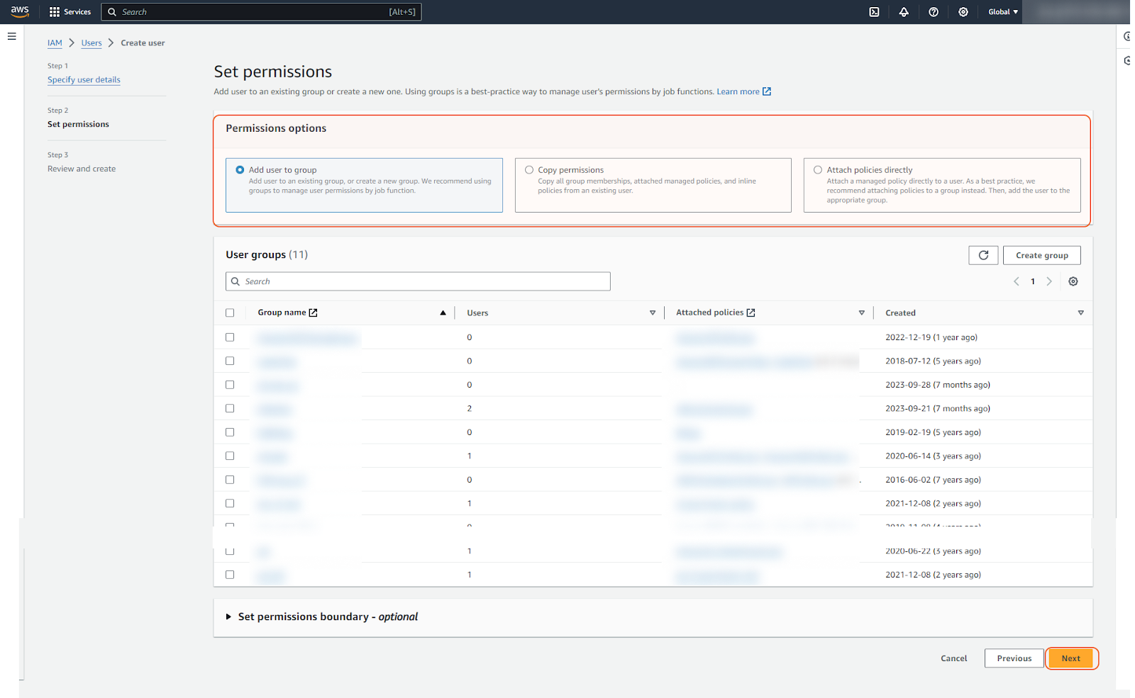 Alternatively, create a role with the desired permissions. Refer to Adding a Role and Trusted Entities for creating user roles. Once the role is created, it is not required to assign the role directly to the user. Instead, assign the role through the D3 connection or D3 commands. Refer to AssumeRole - AWS Security Token Service for details.Then click Next.