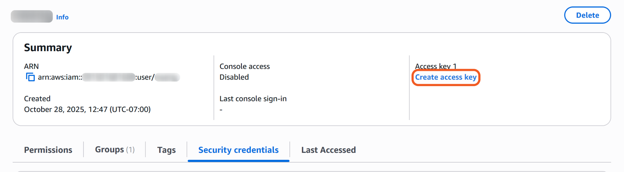 Click the Create access key link.