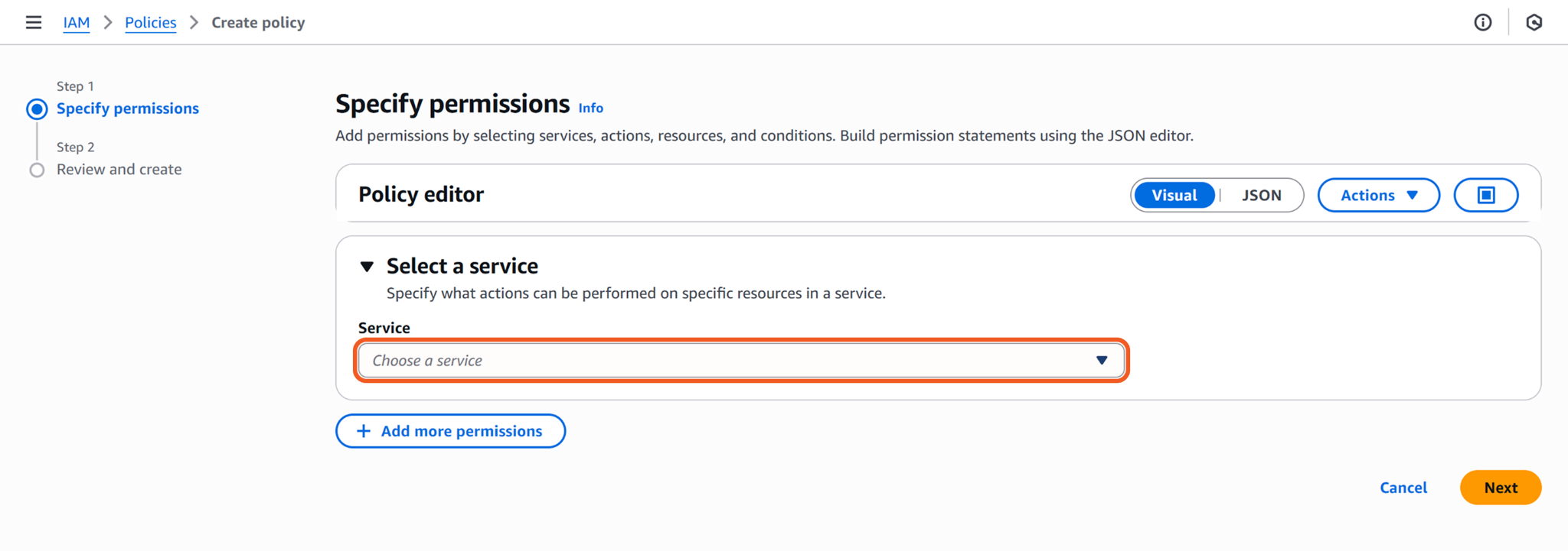 Click the Choose a service dropdown and select the S3 option.