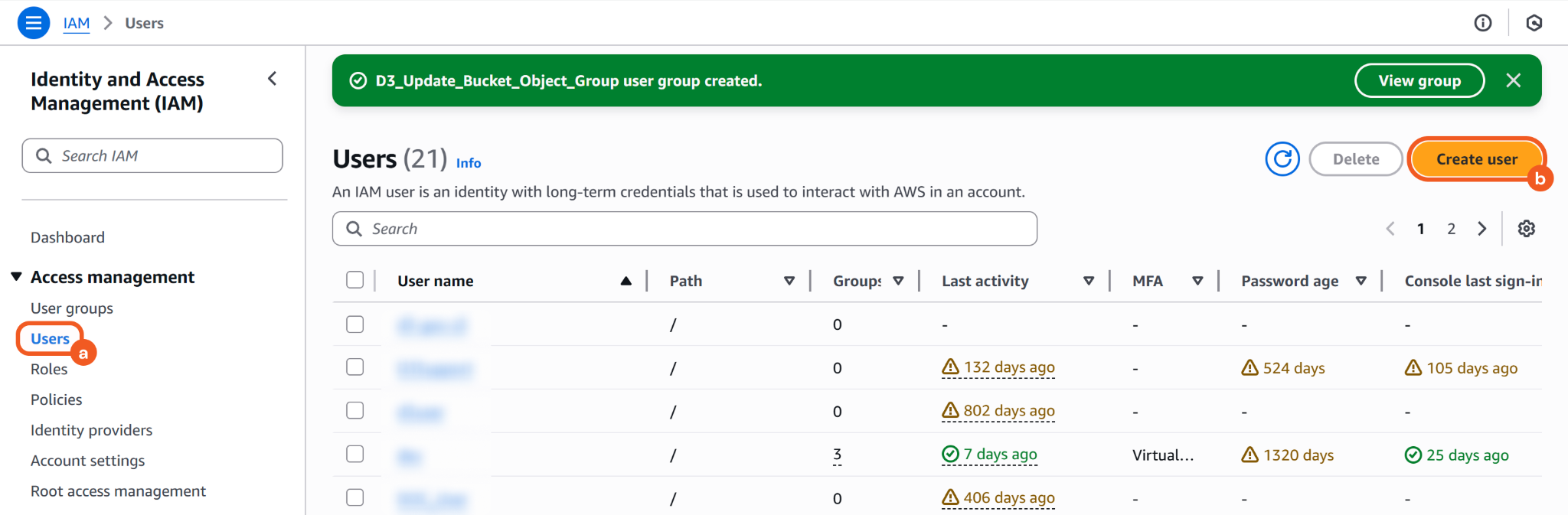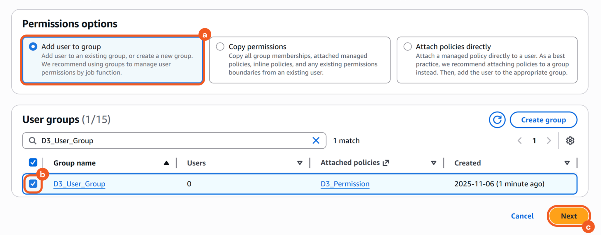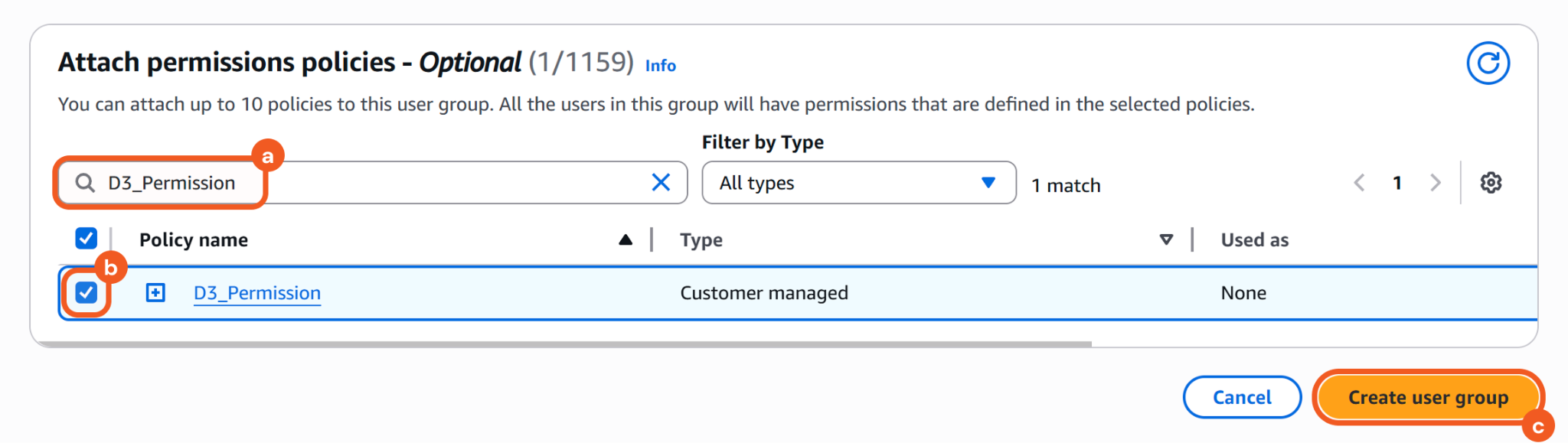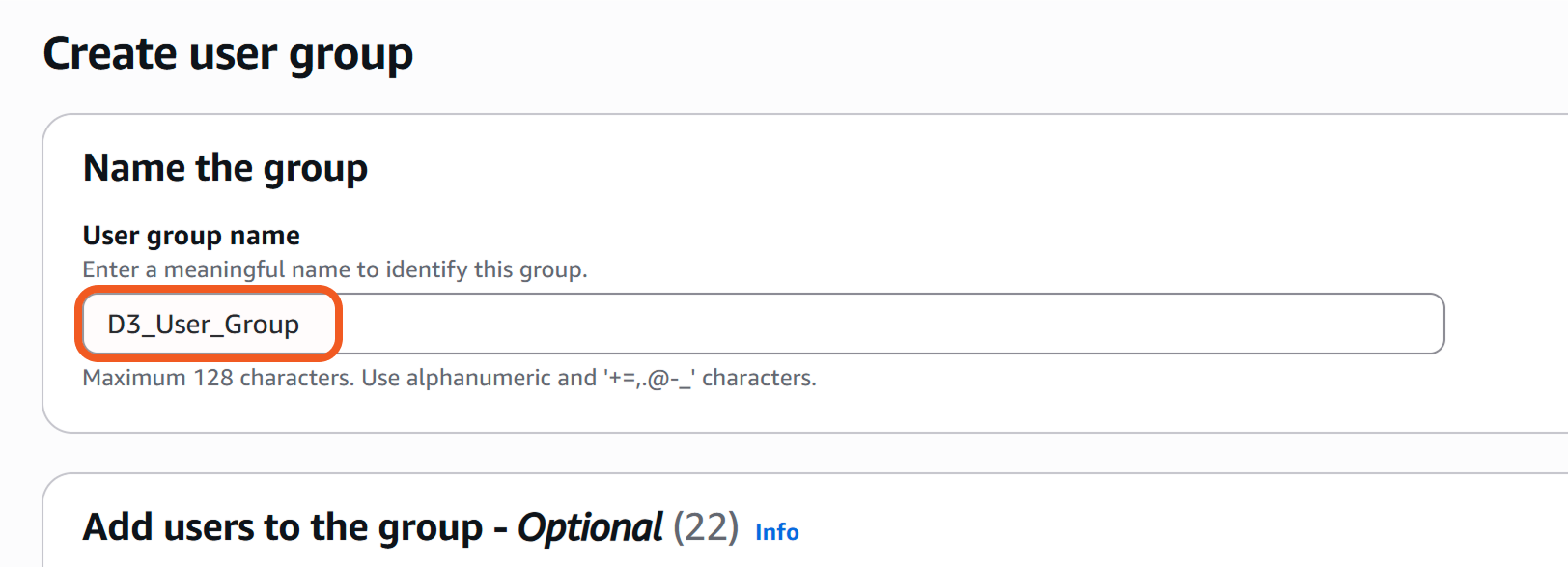 Click the Create user group button to finalize.