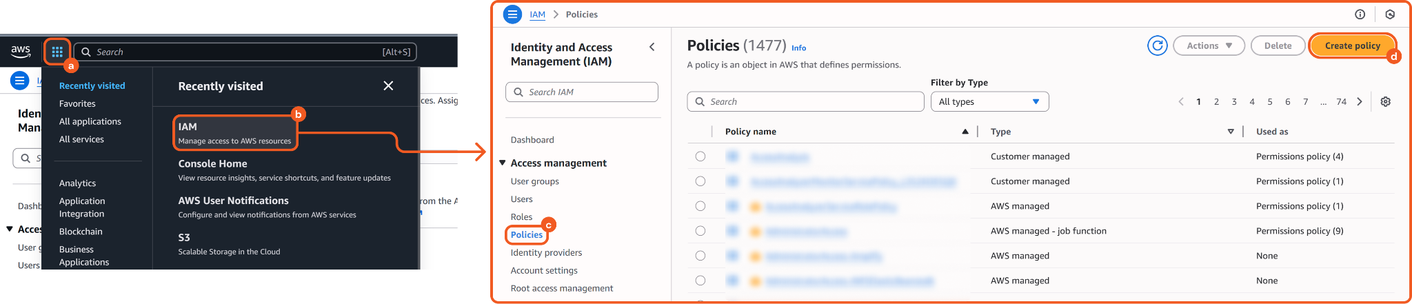 Create a policy in IAM.