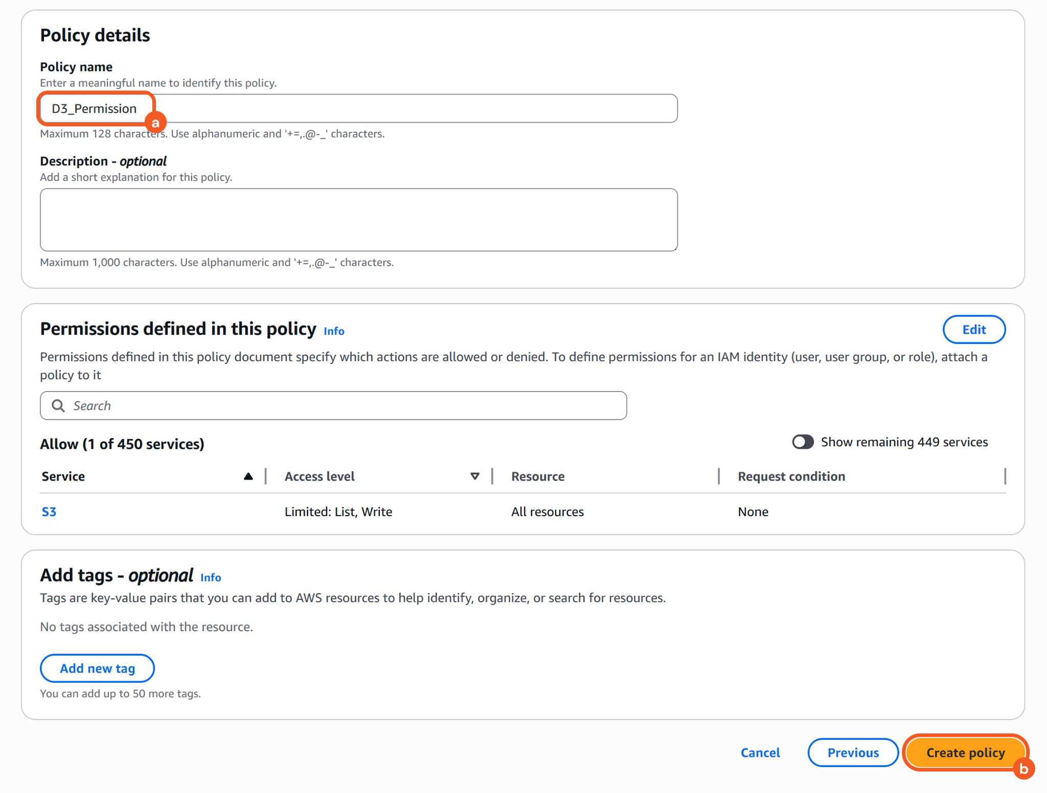 Enter a name for the policy, then click the Create policy button to finalize.