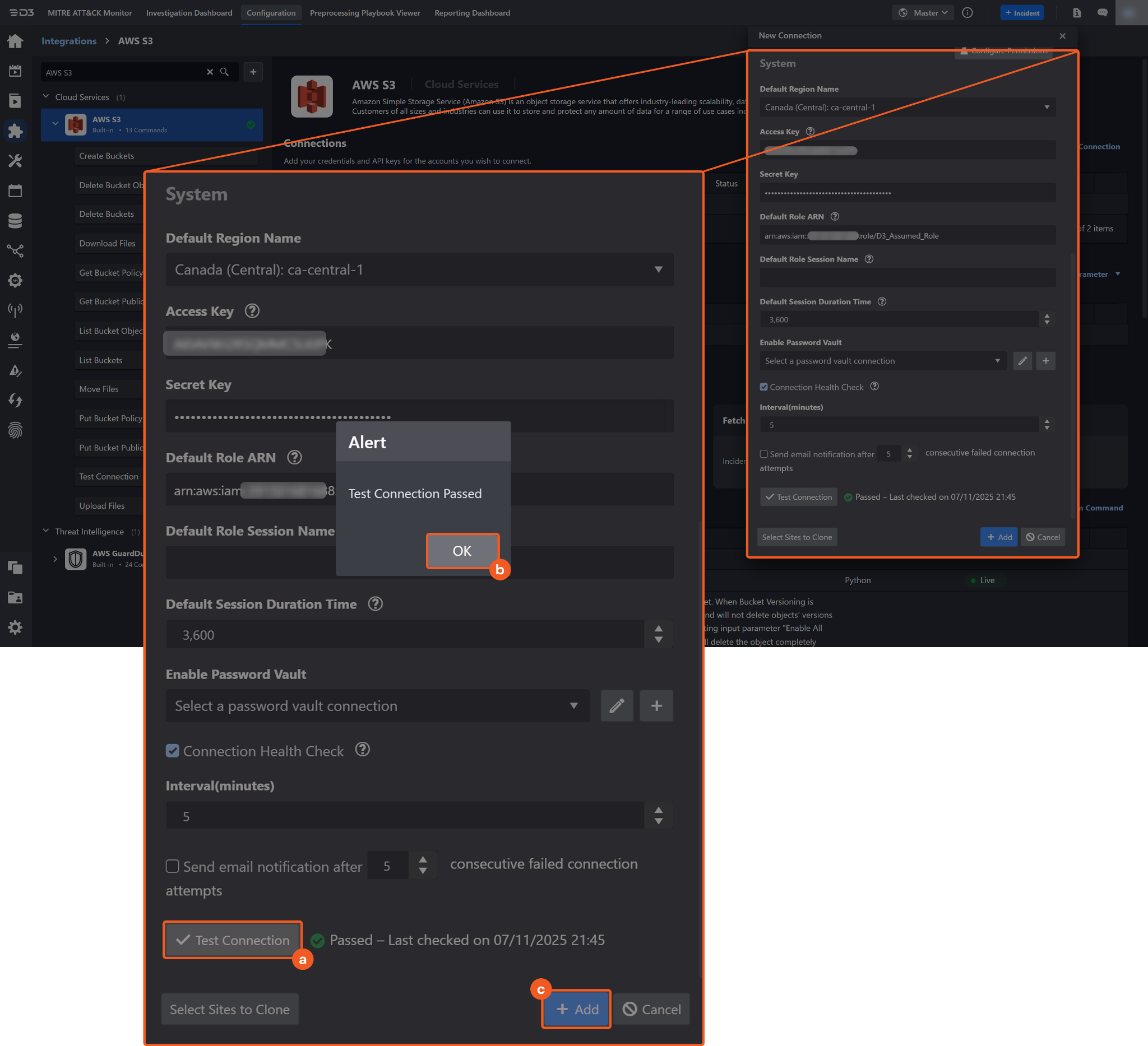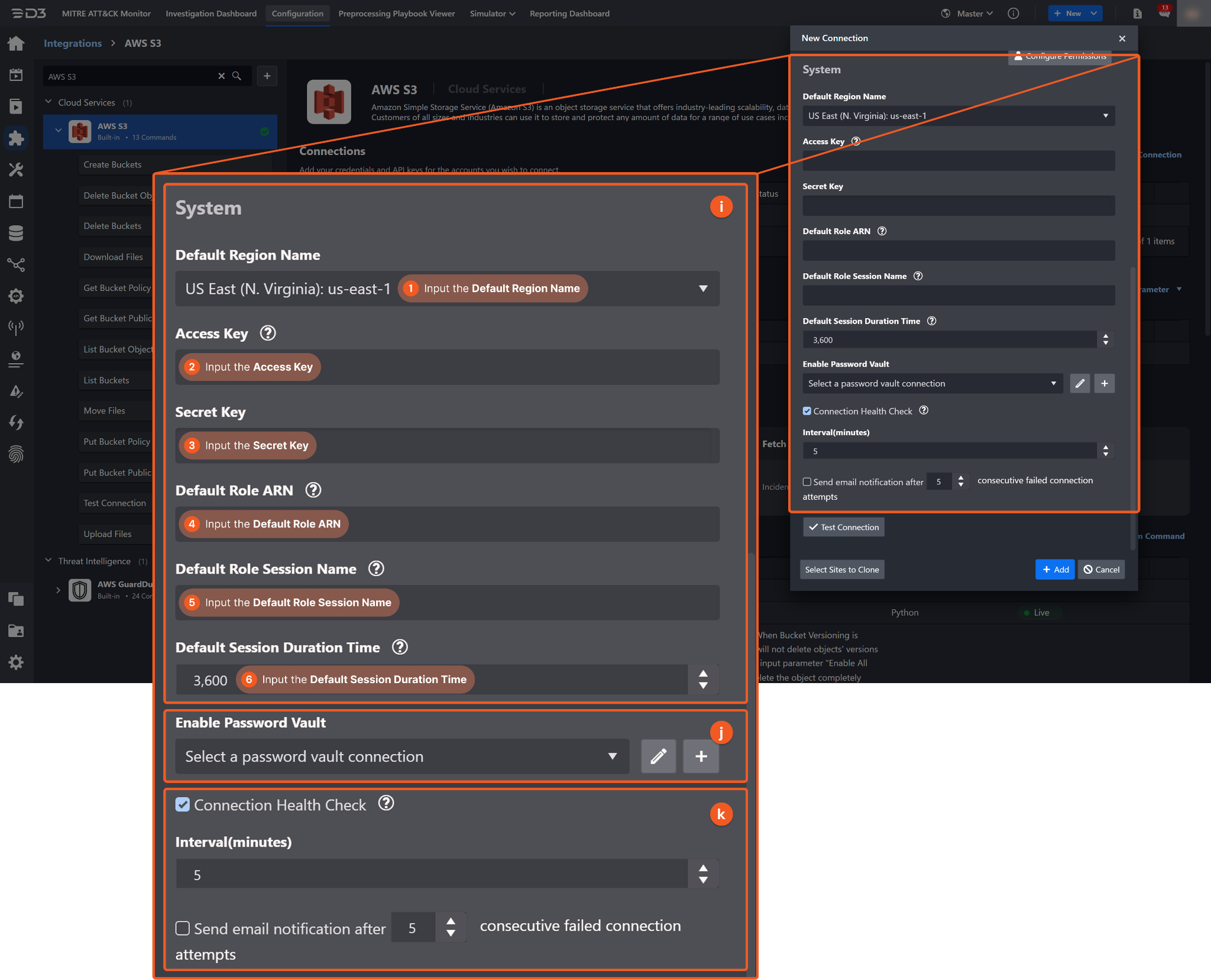 Refer to steps 3.i.1 and 3.i.2 in Configuring D3 SOAR to Work with AWS S3.
