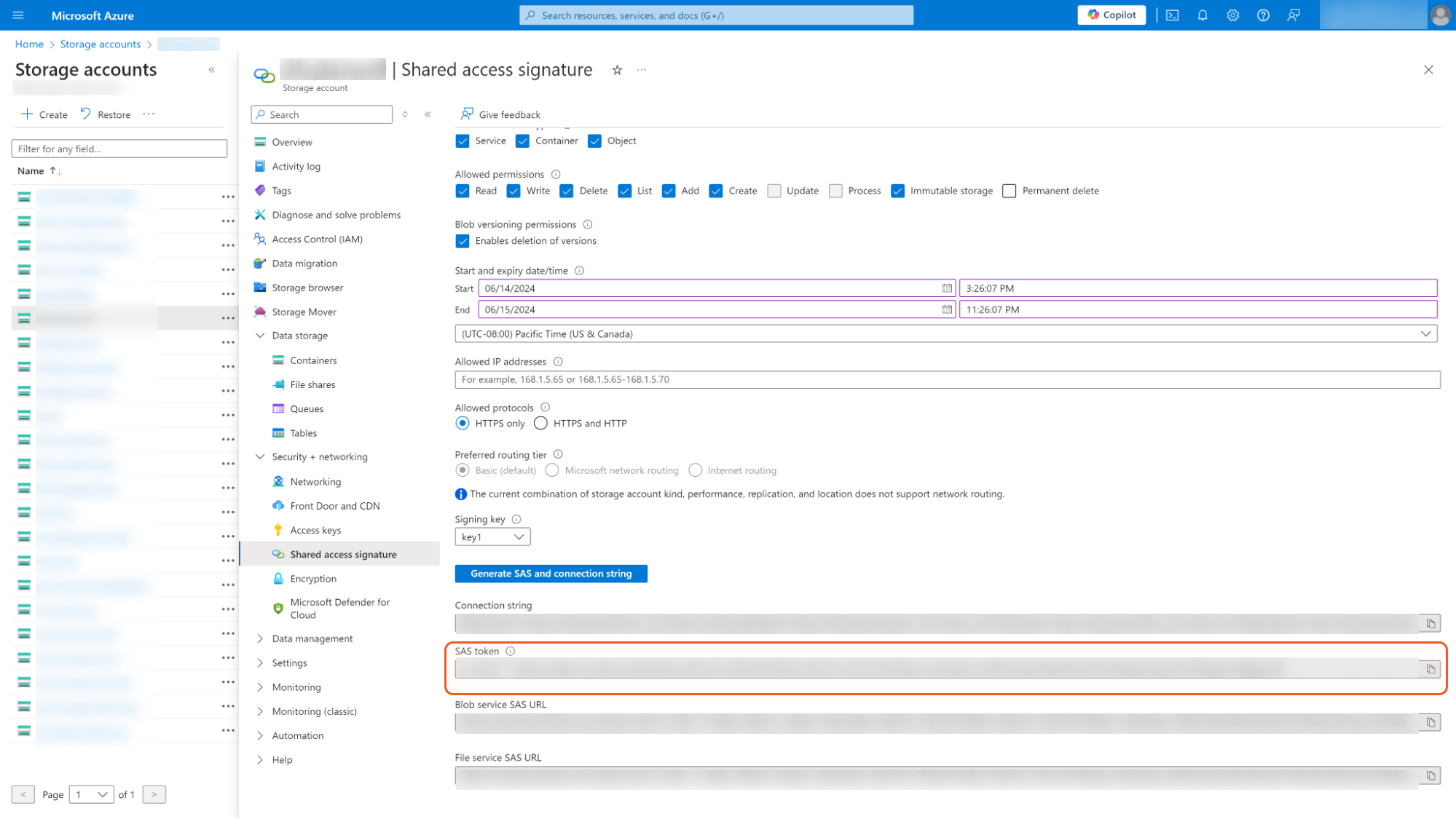 2. Copy the SAS Key from the Azure Blob Storage platform. Refer to step 6 of Configuring Azure Blob Storage to Work with D3 SOAREnable Password Vault: An optional feature that allows users to take the stored credentials from their own password vault. Refer to the password vault connection guide if needed.