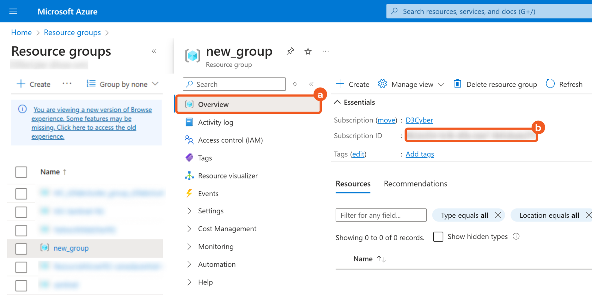 Name the resource group.