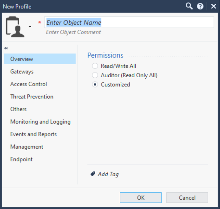 Add Threat Rule | Threat Prevention: Policy > Policy Layers: Write; Policy Exceptions: Write Permissions > Profiles: Write; Protections: Write; Settings: Write |