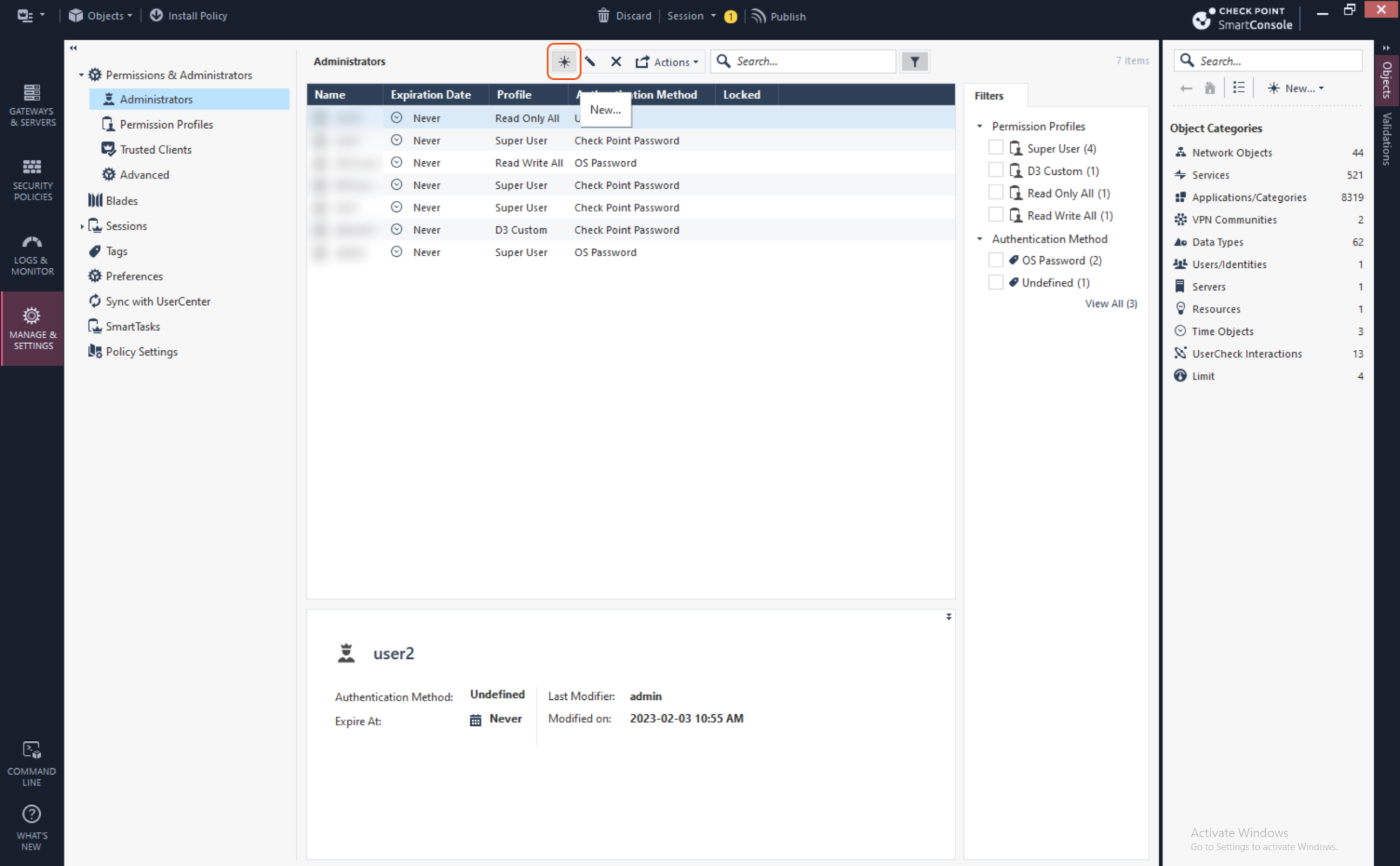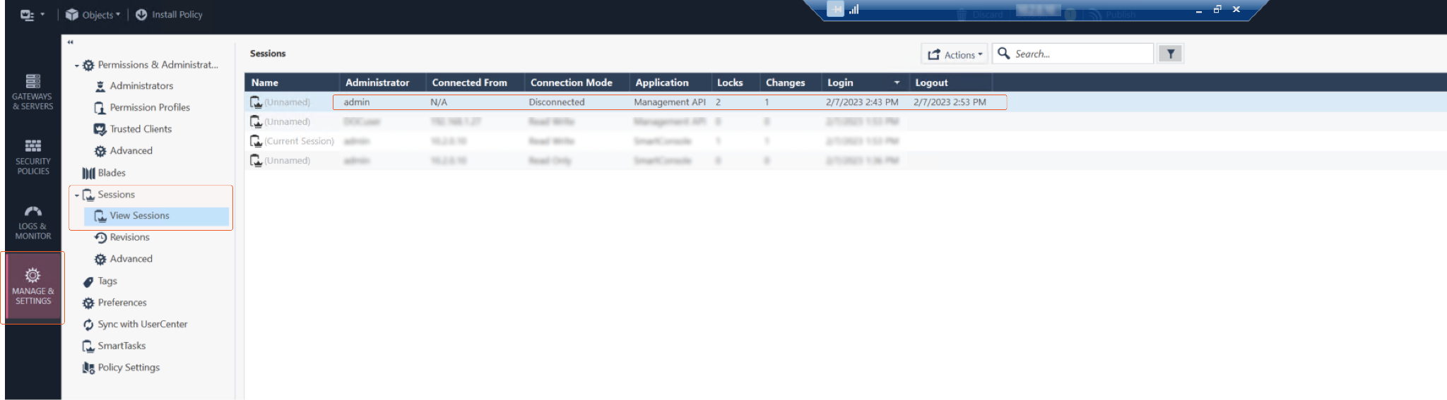 Log into CheckPoint SmartConsole.