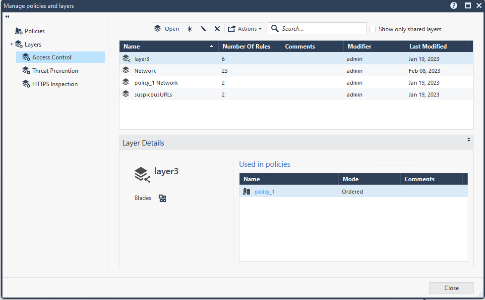 Shows the threat prevention rules of the specified layer.