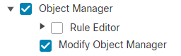 The Object Manager > Modify Object Manager permission means that users only need to select the sub policy Modify Object Manager under Object Manager.