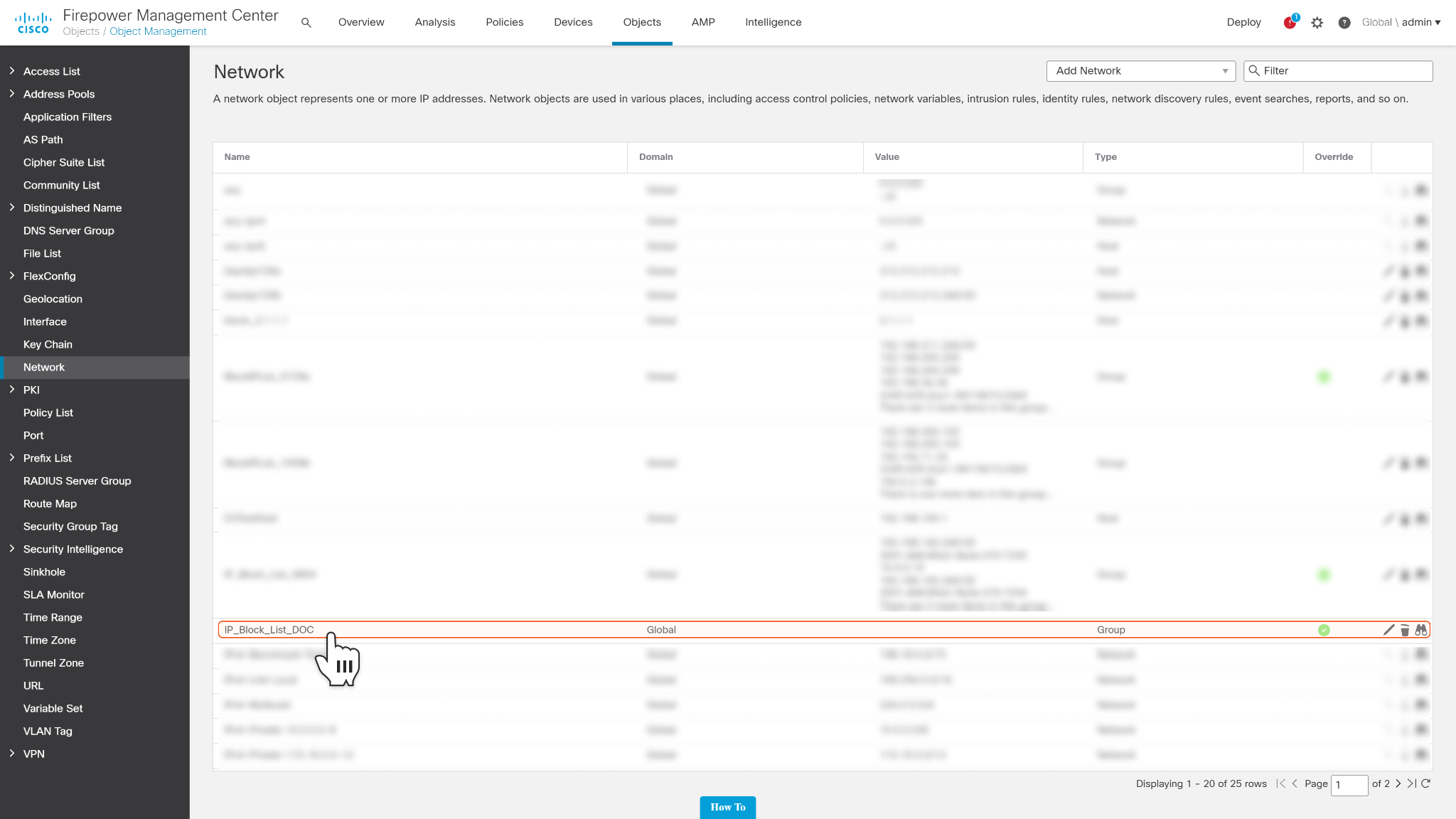 Users should find the IP Block List that they just created in the Network object list. Save the name which will be used when blocking IPs.