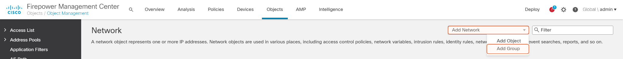 Click Network on the left side, then select Add Group in the Add Network dropdown list on the top.