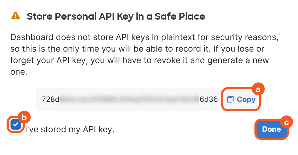 Navigate to the API keys and access tab, then click on the Generate API key button.