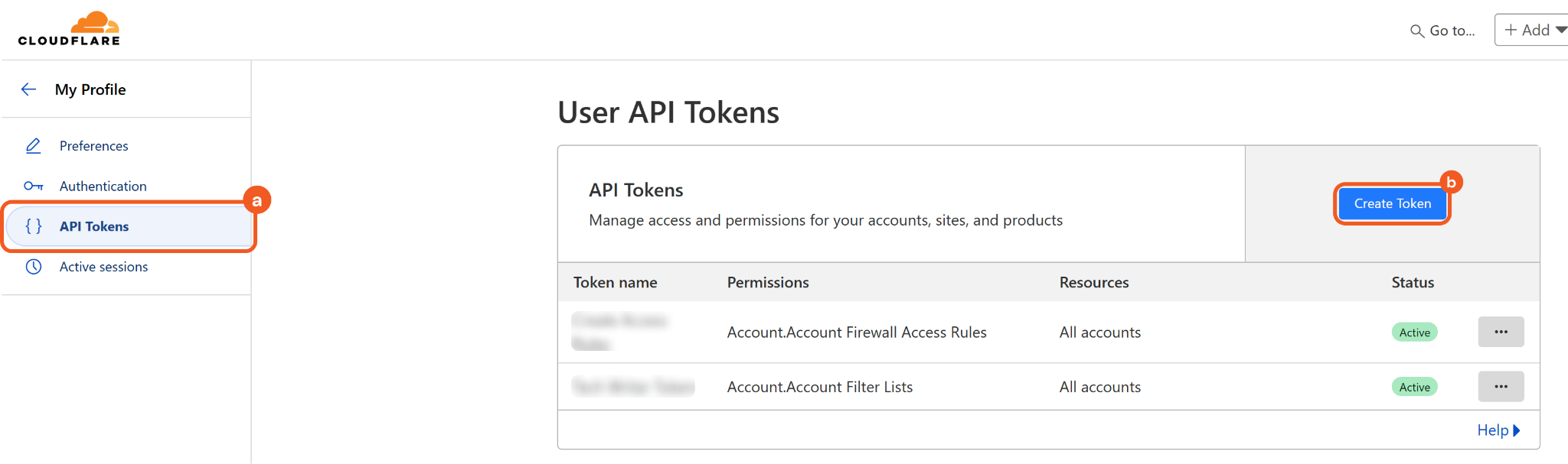 Select the API Tokens tab, then click the Create Token button.