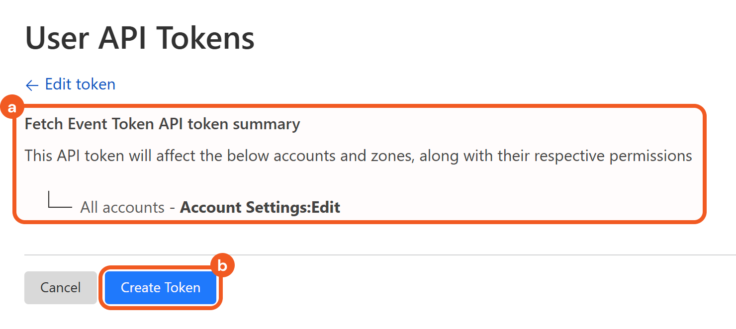 Review the token summary, then click the Create Token button to generate the token’s secret.