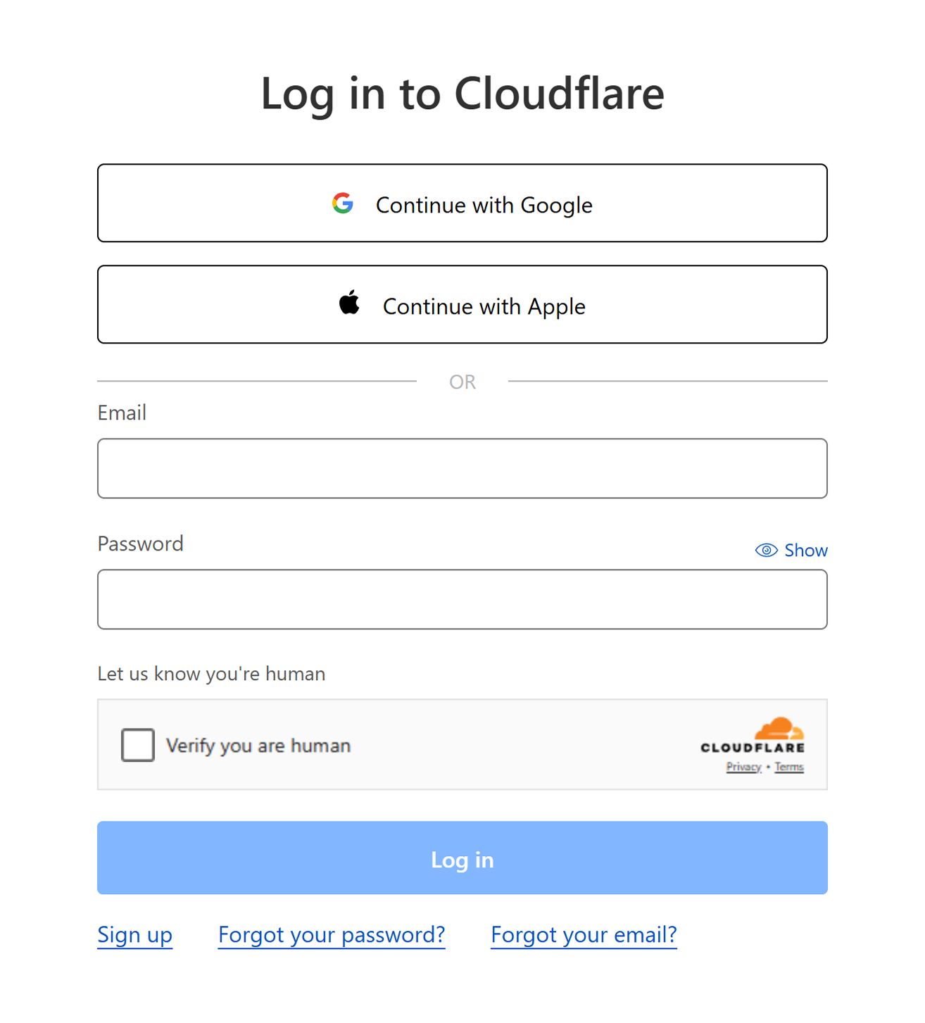 Log in to Cloudflare.