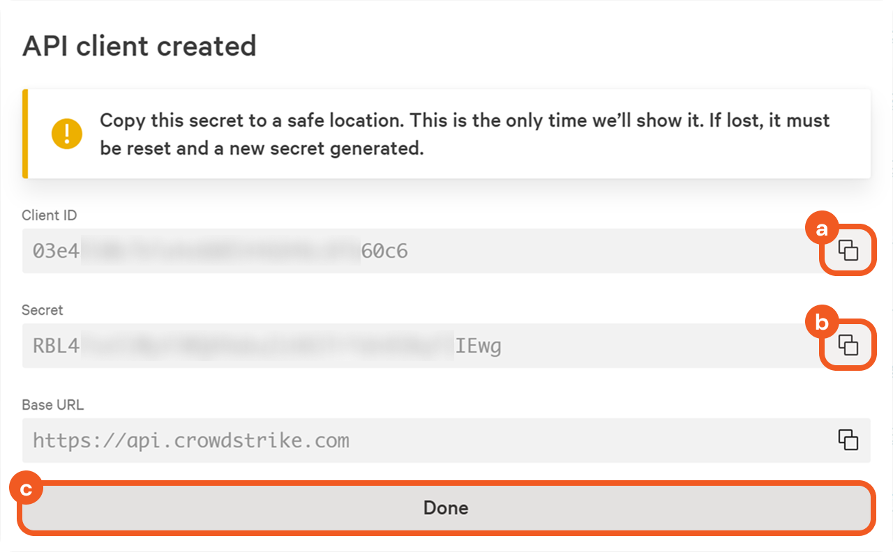 Server URL | The base server URL for the CrowdStrike API. The Server URL can be obtained from the CrowdStrike UI under Support and resources > API clients and keys. | https://api.crowdstrike.com |