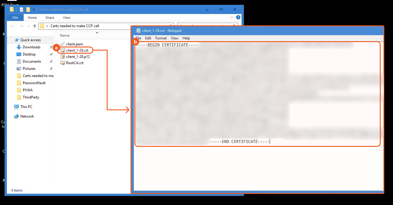 Open the client_1-28.crt file in a text editor (e.g., Notepad), then copy the entire certificate without making any modifications.