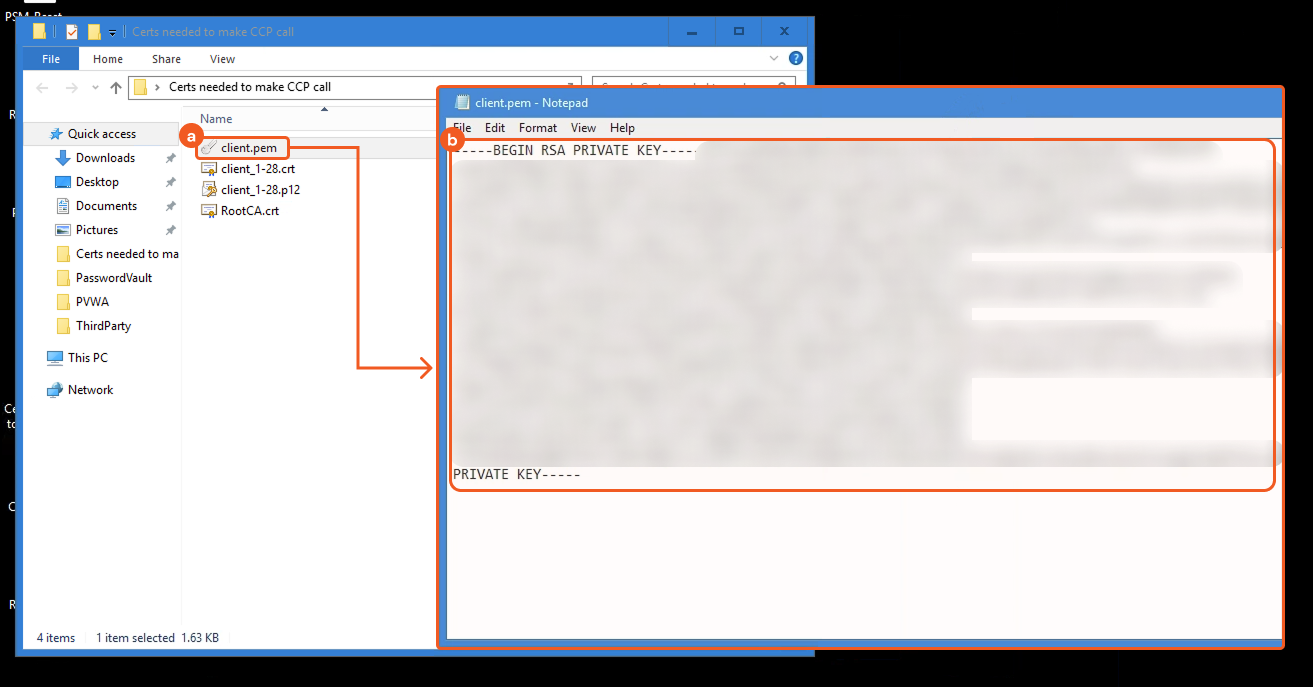 Open the client.pem file in a text editor (e.g., Notepad), then copy the entire private key without making any modifications.