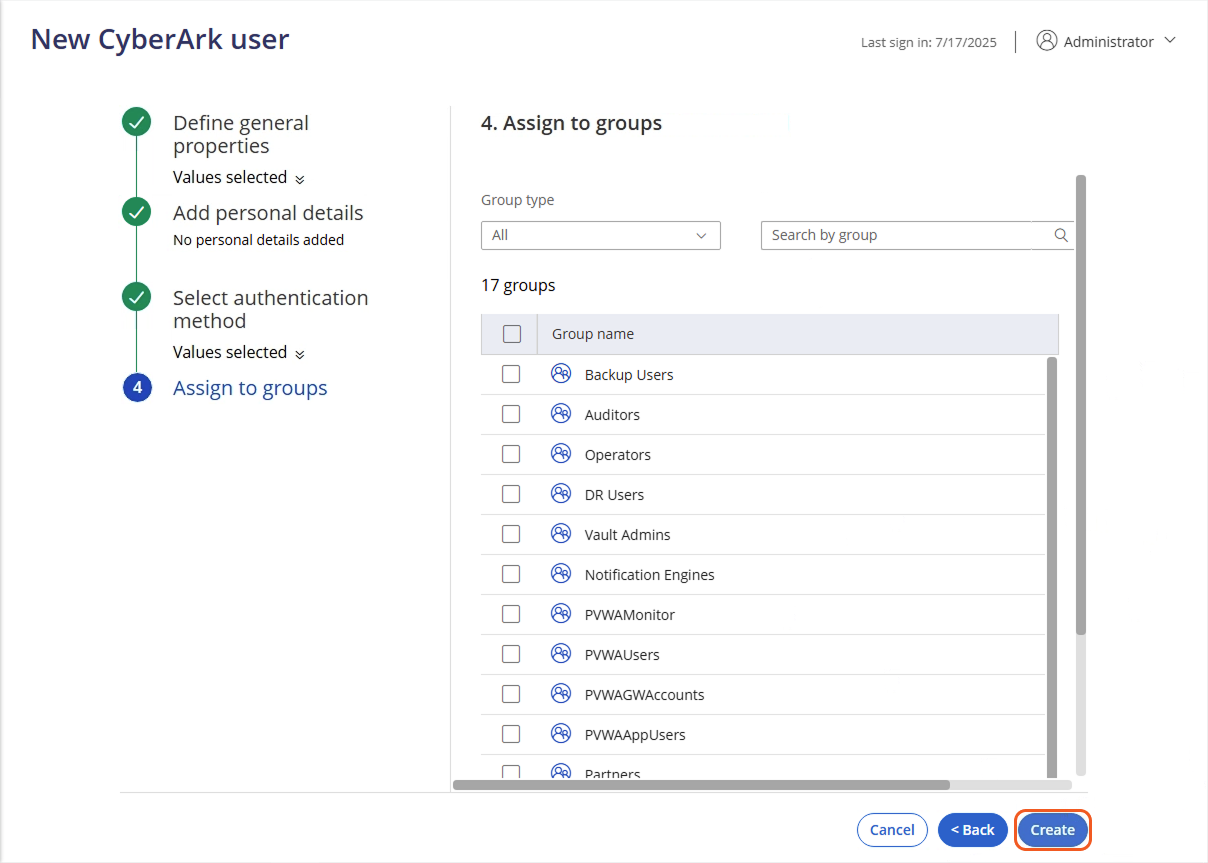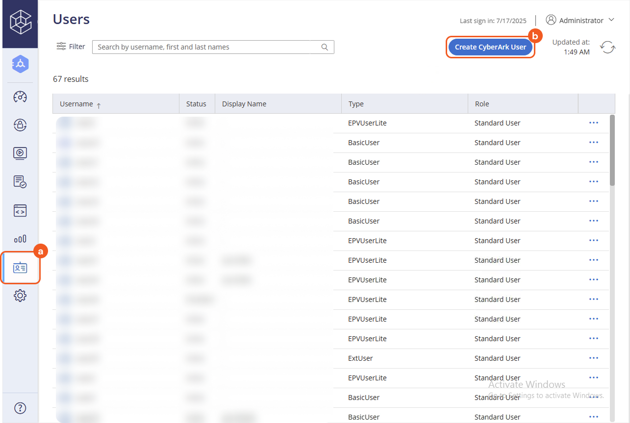 Navigate to the User Provisioning tab, then click the Create CyberArk User button.
