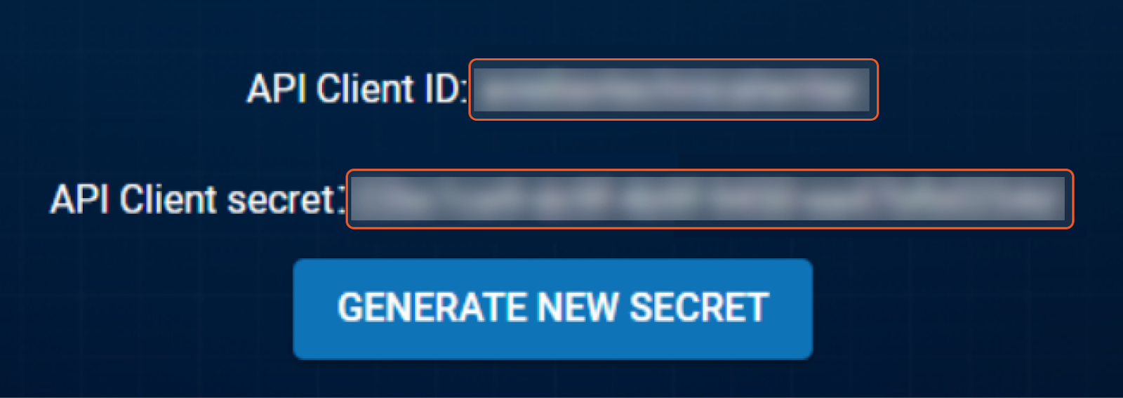 To generate a new API client secret, click GENERATE NEW SECRET.