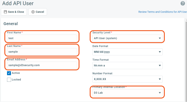 For more information about the creating and managing API users, see Adding or editing an API user.