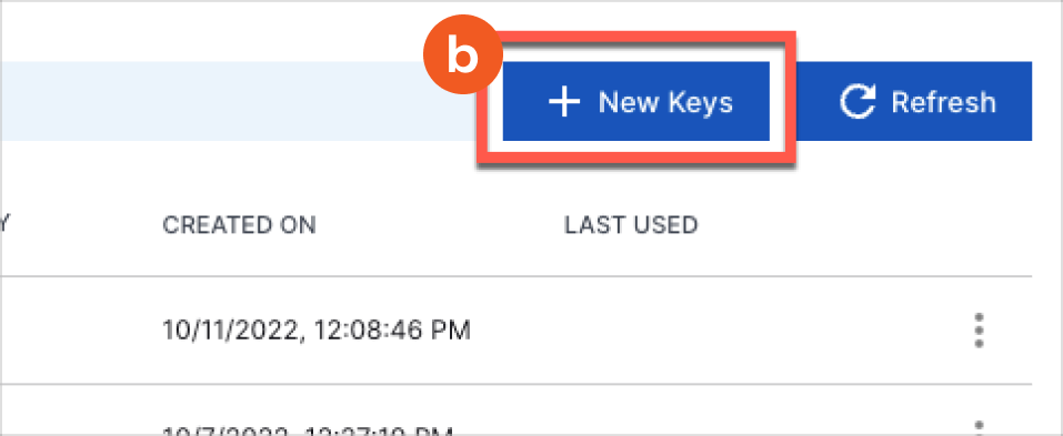 If there are existing API keys, click New Keys.