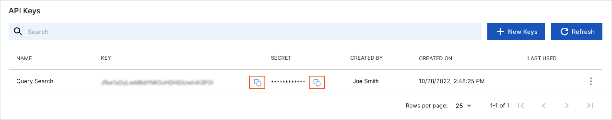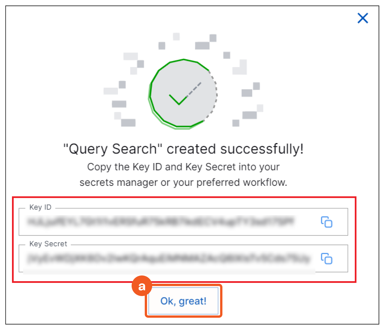 Click the respective copy icons to copy the Key and Secret strings.