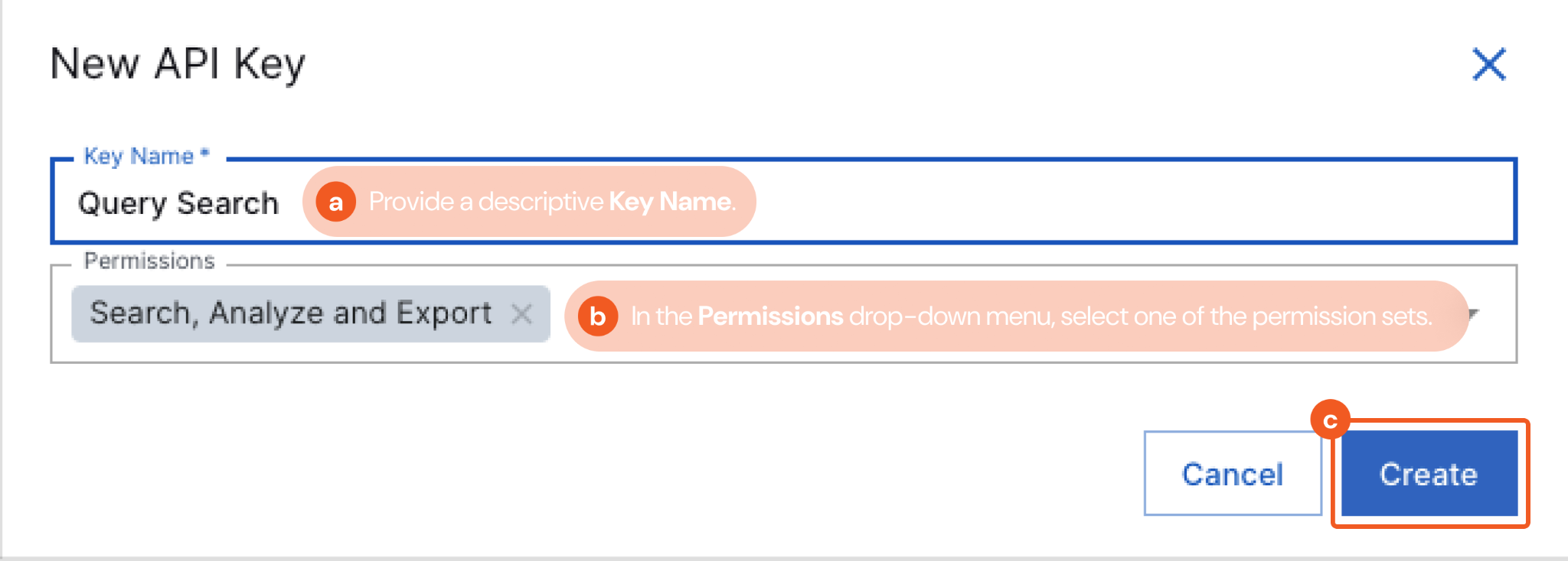 In the New API Key dialog box, do the following: