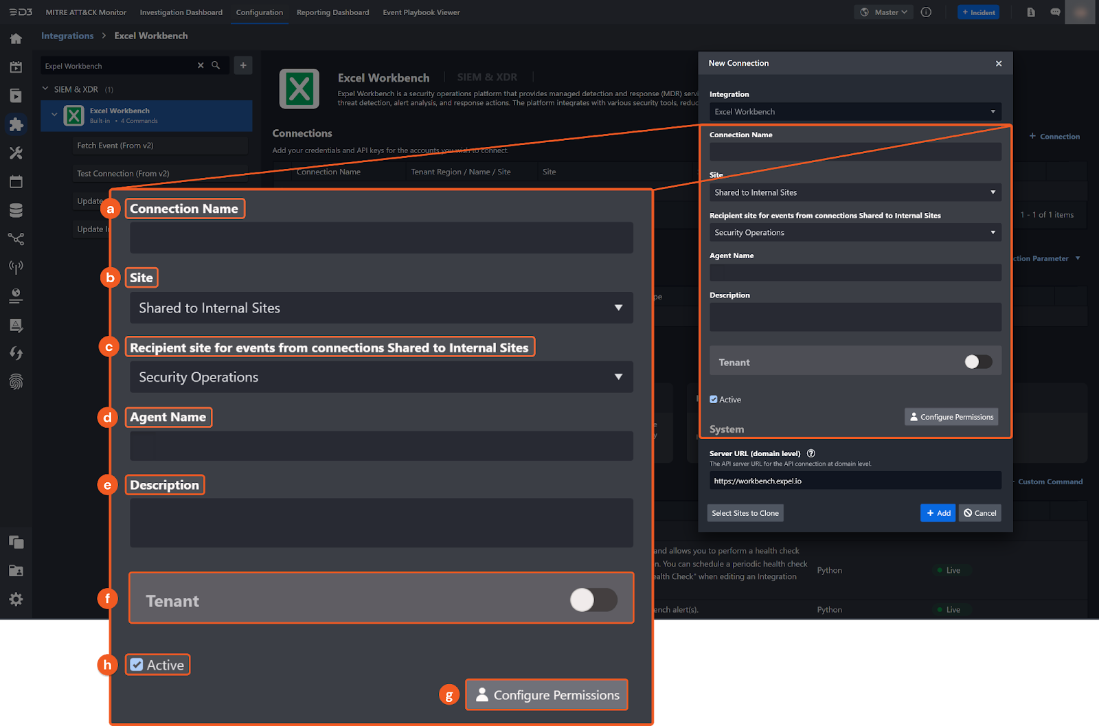 Server URL | The API server URL for the API connection at domain level. | https://workbench.expel.io |