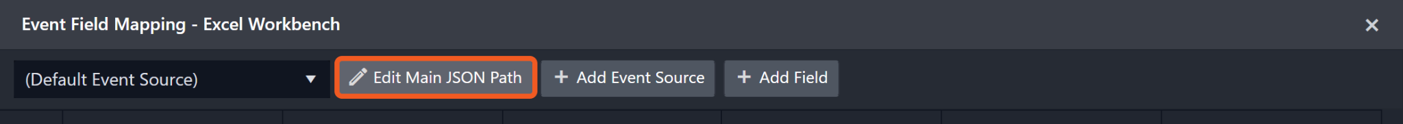 The Default Event Source is the default set of field mappings that are applied when this fetch event command is executed. For out-of-the-box integrations, you will find a set of field mapping provided by the system. Default event source provides field mappings for common fields from fetched events. The default event source has a "Main Event JSON Path" (i.e. $.data) that is used to extract a batch of events from the response raw data. Click Edit Main JSON Path to view the "Main Event JSON Path".