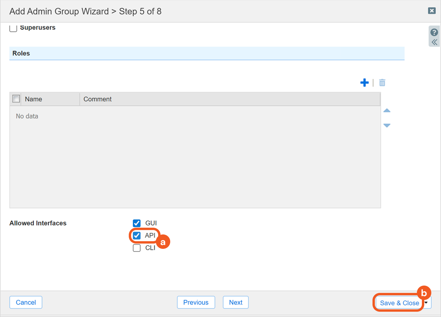 Enter a name for the group, then click the Next button until reaching the roles and API access page.