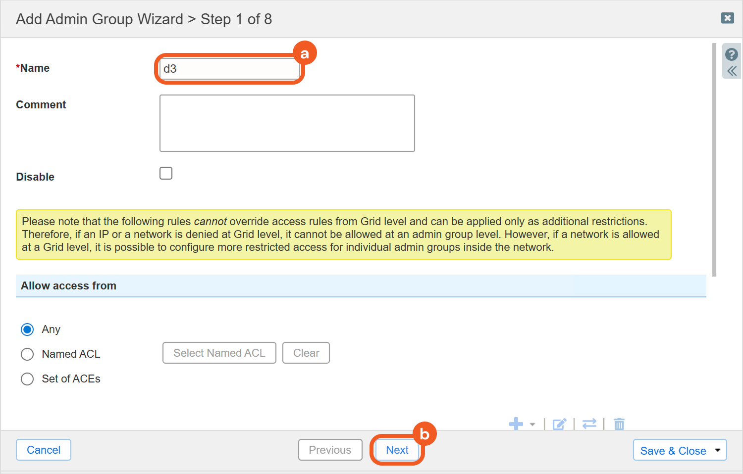 Select the previously configured admin group.