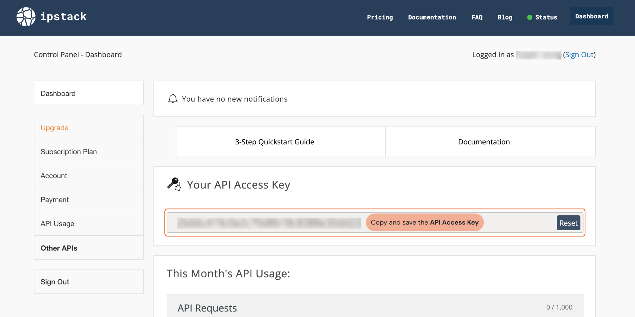 The prerequisite for using this guide is an ipstack account. To create a new account, navigate to Sign Up: ipstack to get started.