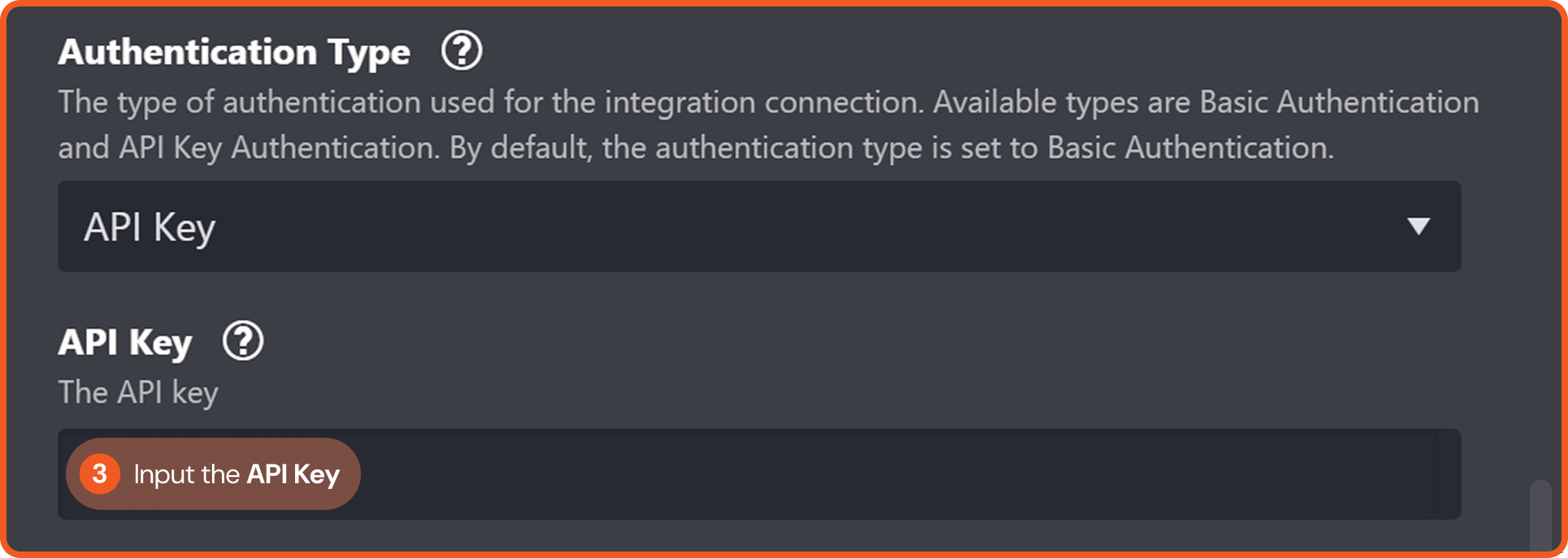 Authentication Type | The authentication method used for the connection. Supported types are Basic Authentication and API Key Authentication. By default, the authentication type is set to Basic Authentication. | Basic Authentication |