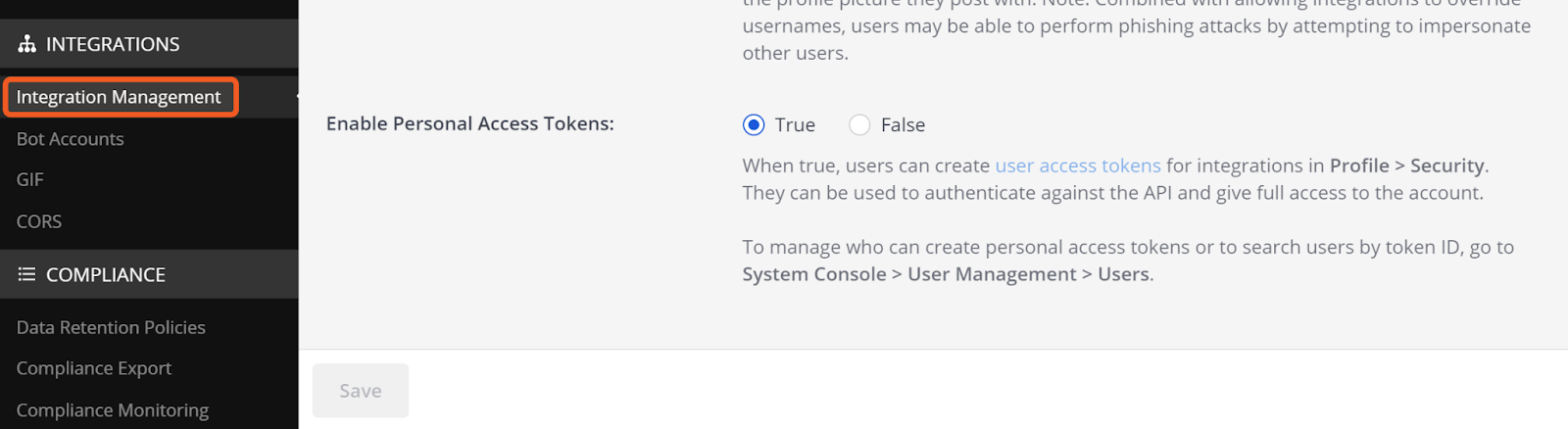 Store and copy your access token to D3 vSOC (refer to step 3i sub-step 2 in the Configuring D3 SOAR to Work with Mattermost section).