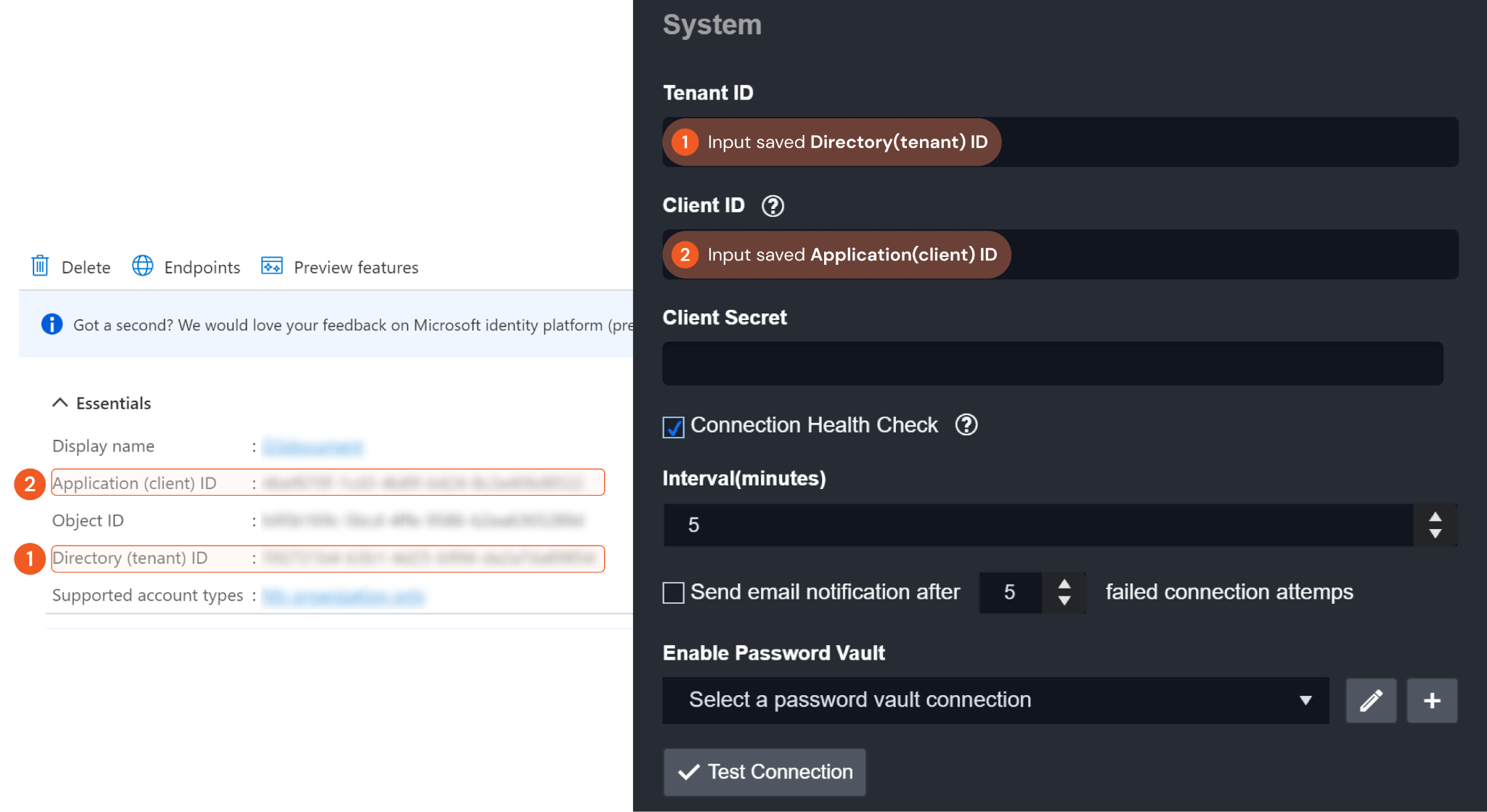 Tenant ID | The Tenant ID to authenticate the connection. | f621***-a095-***-8ee9-***feed |