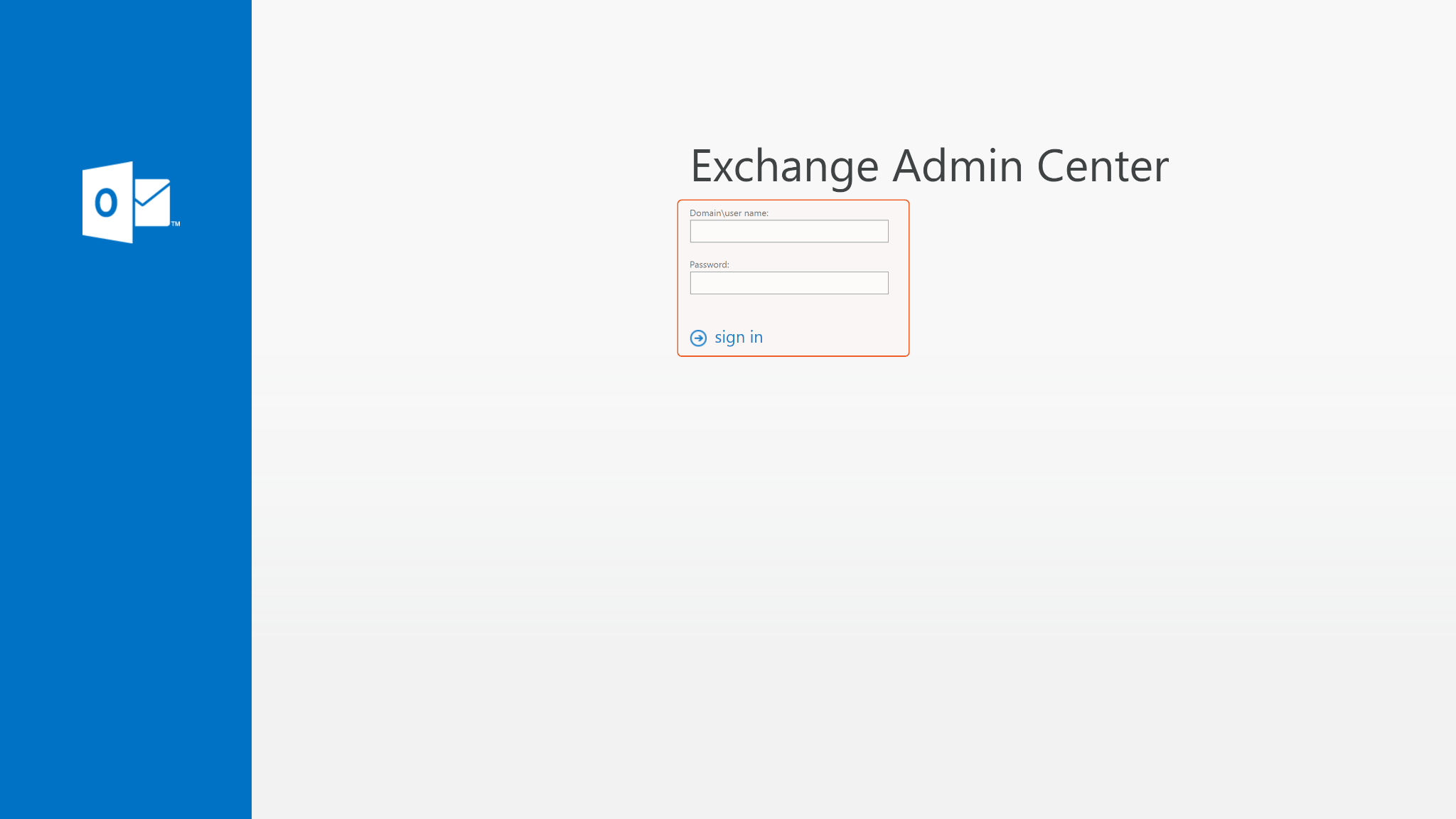 Log in to your Exchange admin center with your credentials.