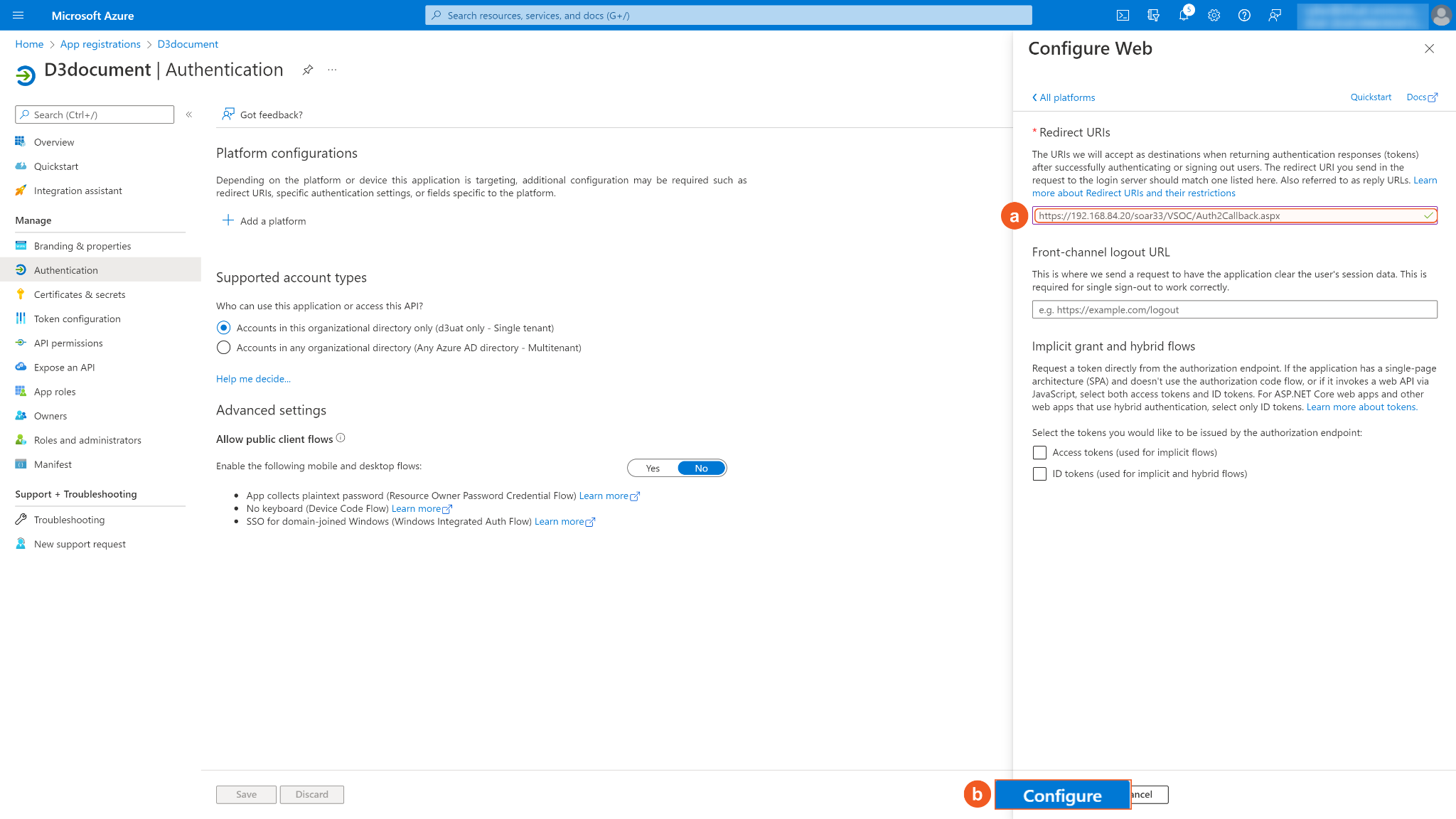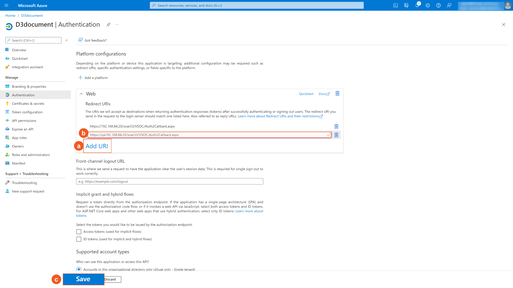 Select Support account types to Accounts in the organizational directory only (d3uat only - Single tenant)