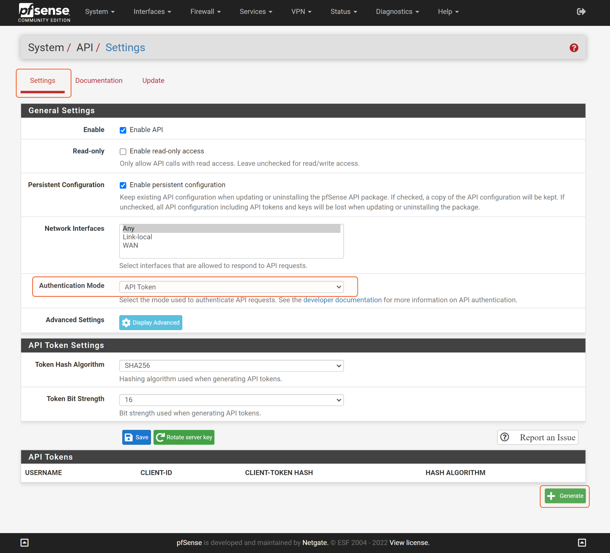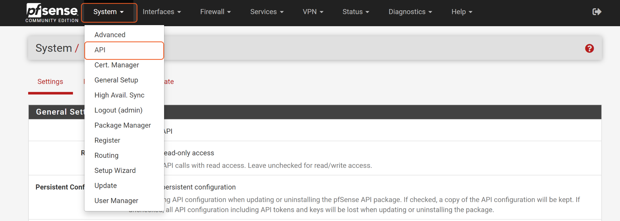 Navigate to Systems > API after the web GUI has restarted.