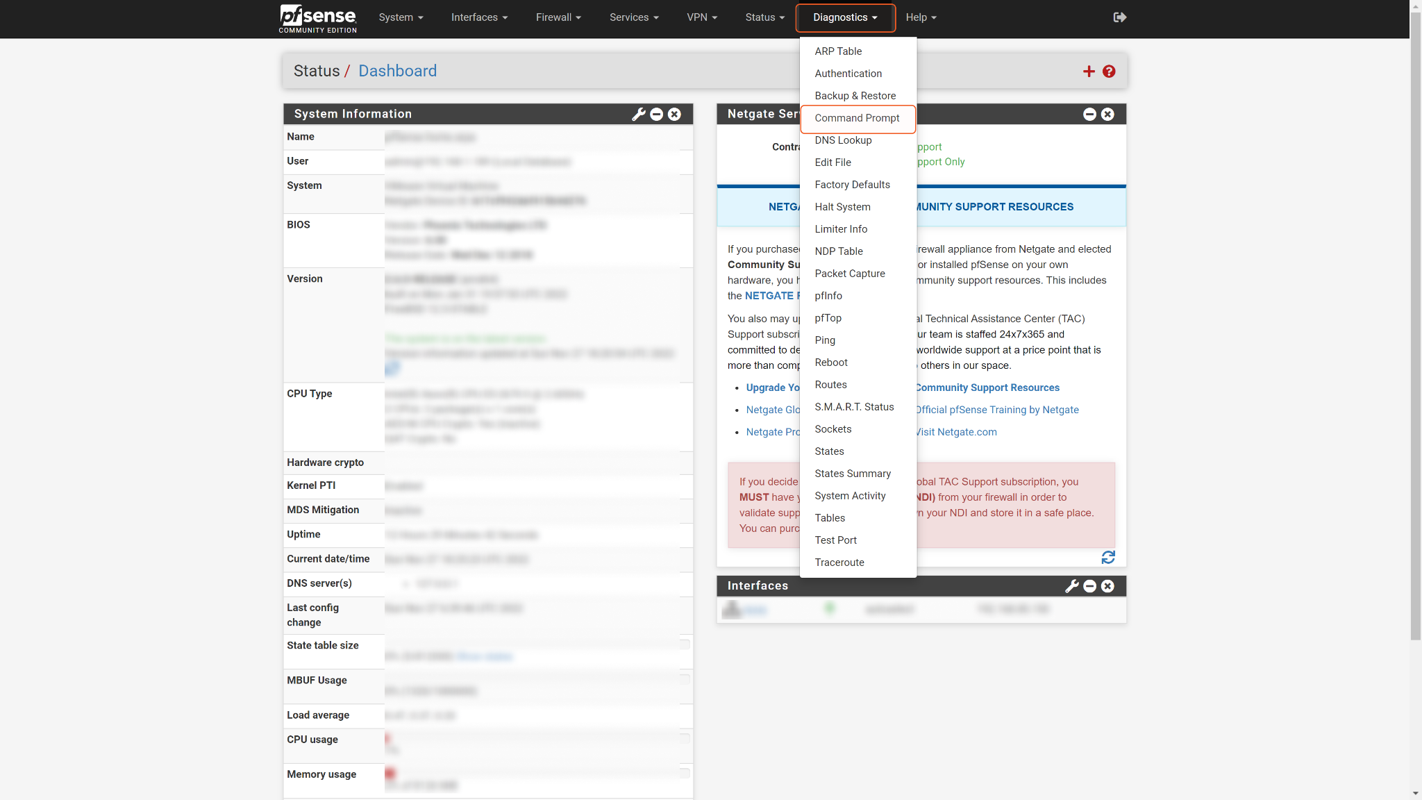 Navigate to Diagnostics > Command Prompt.