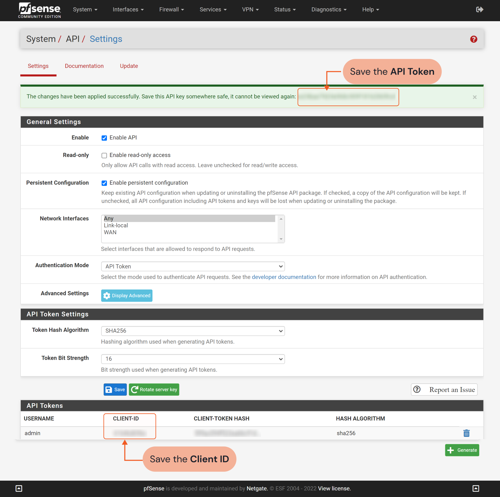 Client ID | The client ID from the PfSense WebGUI for the API authentication. | ***** |