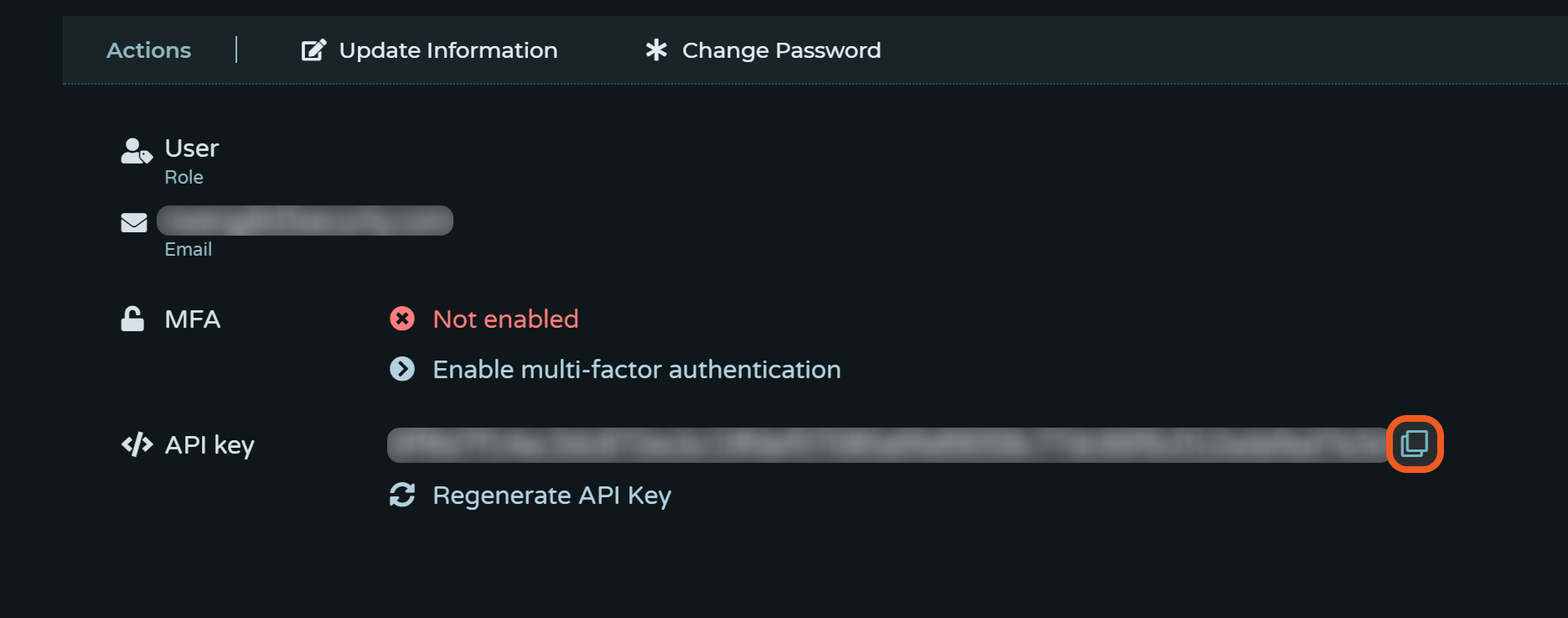 Copy the API key on the account overview page.