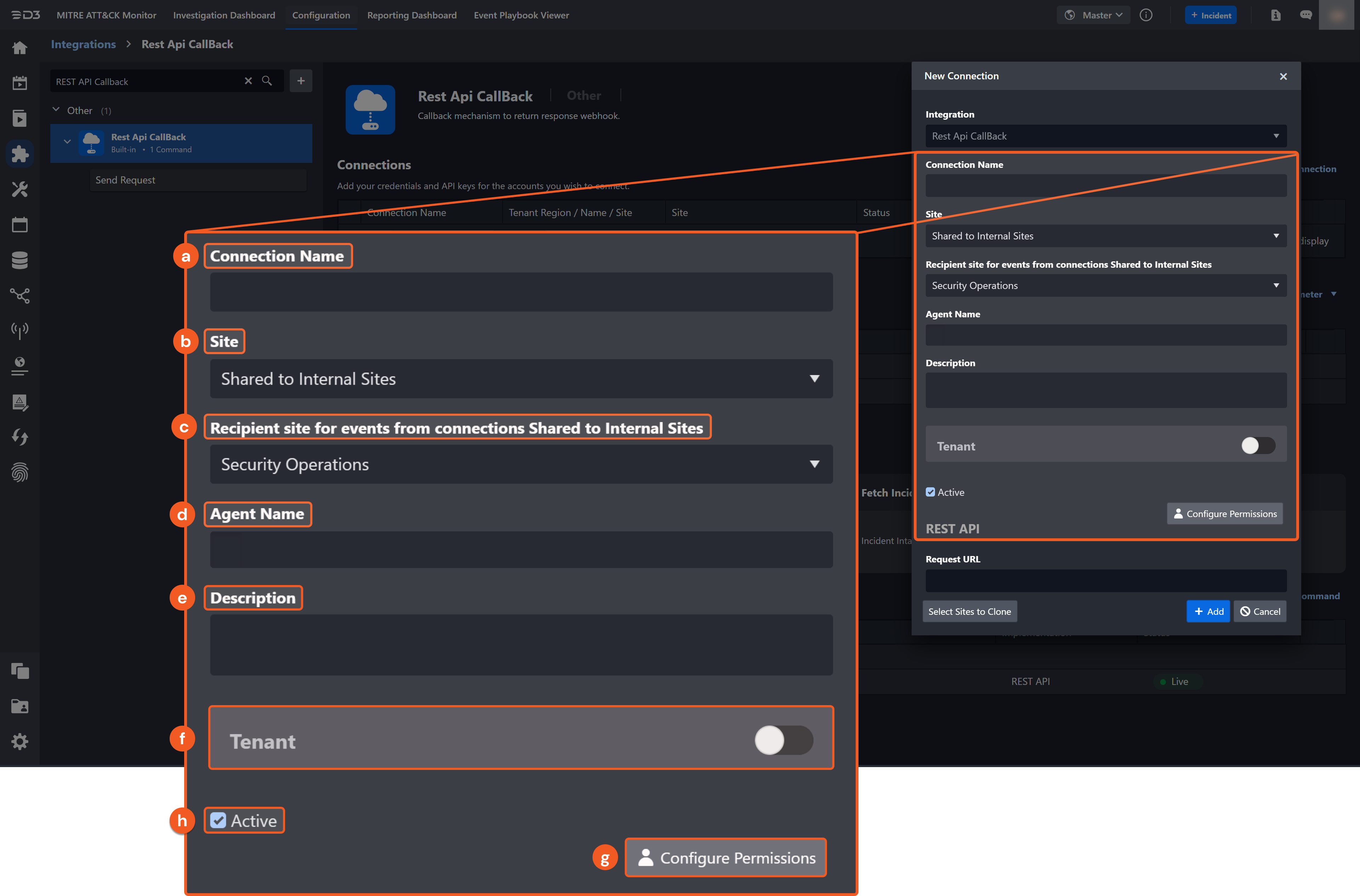 Configure the following fields to create a connection to REST API Callback.